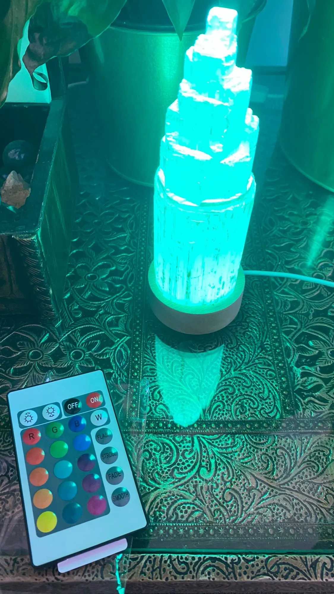 пришла в почтовый ящик, с предварительным сообщением на телефон. нужно подключать к телефонному адаптеру (кабелем usb). пульт даёт разные режимы последовательного меняющегося света разных цветов. нельзя включить один цвет на постоянно. по крайней мере я не нашла. но и так хорошо. подходит для разных полупрозрачных и прозрачных кристаллов в форме шара, яйца, пирамиды, куба. я довольна. рекомендую.
