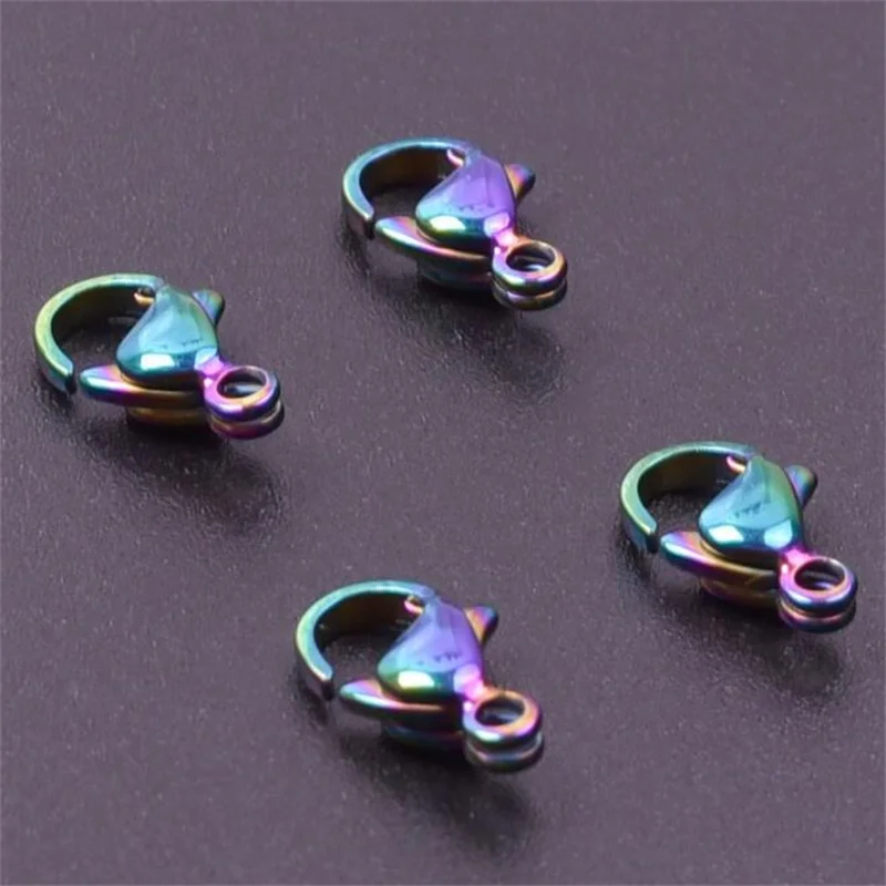 Застежки-карабины из нержавеющей стали радужной расцветки, 10 шт., 111518 мм, соединительные крючки для ожерелья сделай сам, фурнитура для ювелирных изделий, материалы