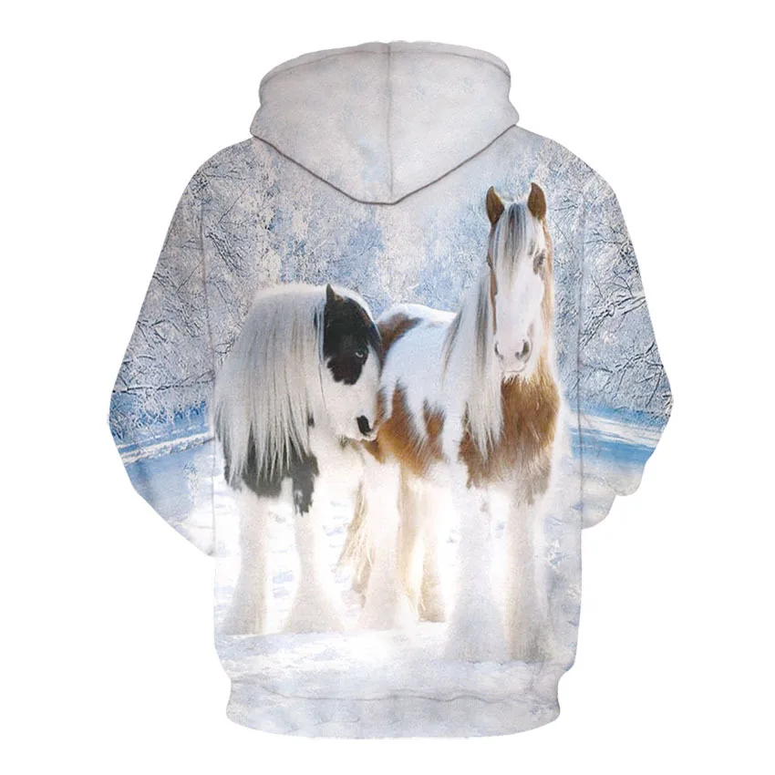Толстовка для мужчин и женщин, пуловер с рисунком белых лошадей, животных, Модный повседневный свитшот с 3D рисунком для мальчиков и девочек, унисекс