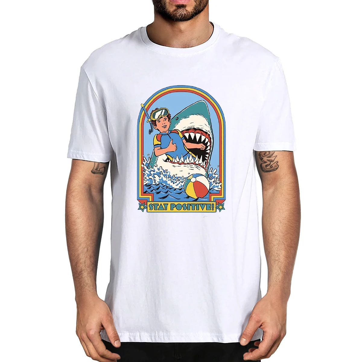 Винтажная забавная Мужская Ретро-футболка из 100% хлопка с надписью оставайся положительный убийца акулы, новинка, Женская Повседневная Уличная одежда, футболка в стиле Харадзюку
