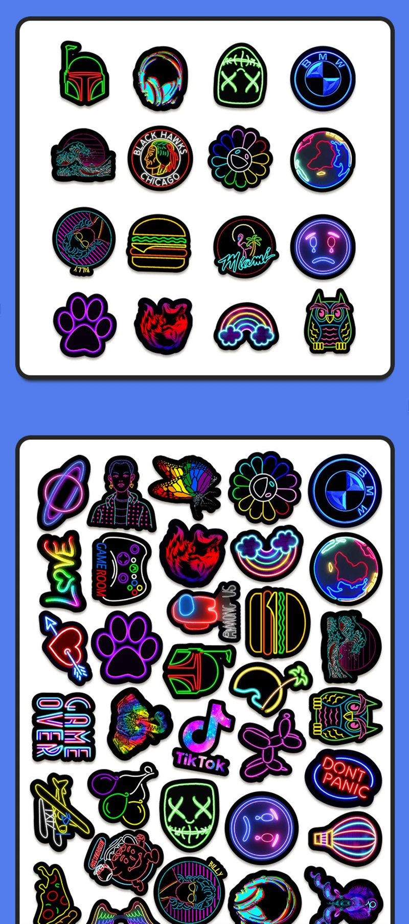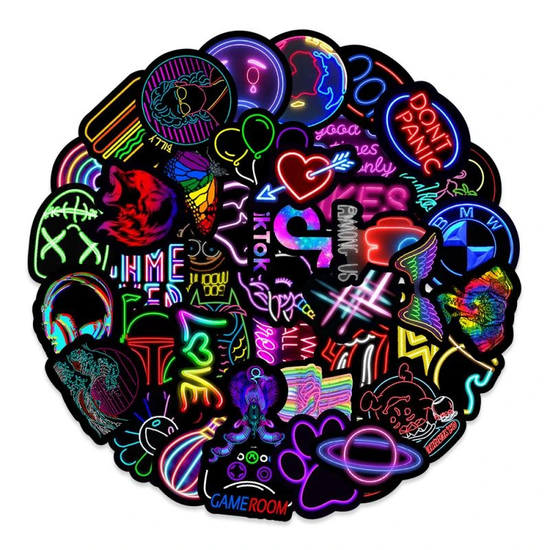 Стикеры неоновые с логотипом граффити, модные Классные модные водонепроницаемые наклейки для велосипеда, чемодана, гитары, ноутбука, скейтборда, классической игрушки, 103050 шт.