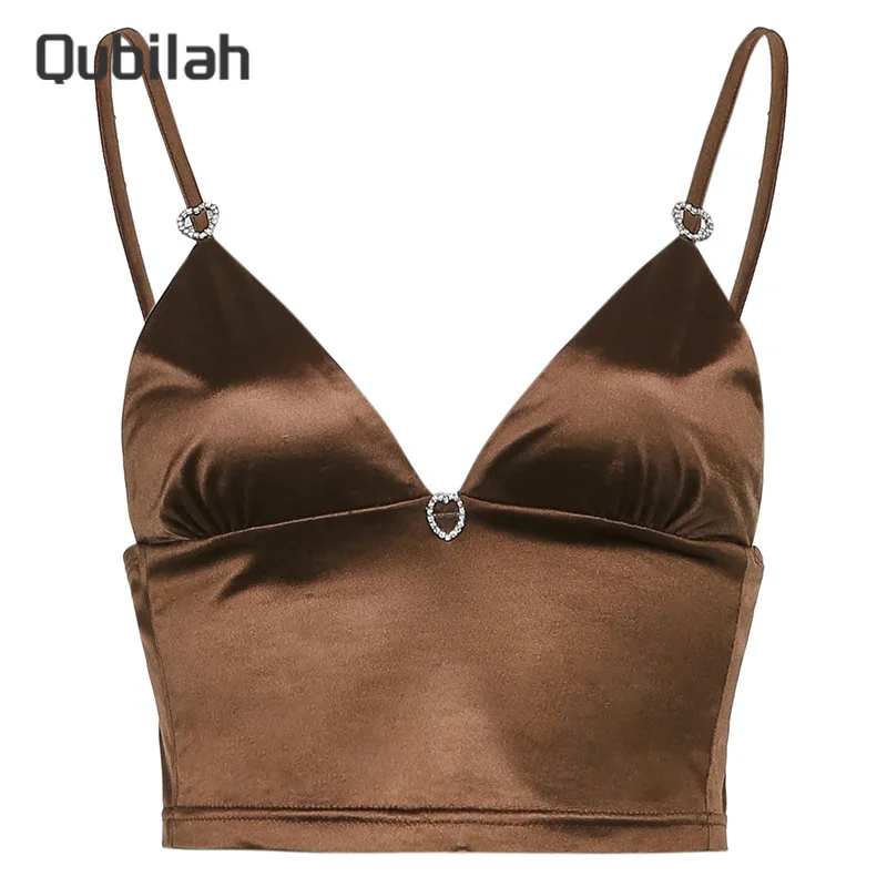 Женский топ на бретелях Y2k, сексуальный топ с открытой спиной, лето 2021, модная уличная одежда, глубокий v-образный вырез, винтажный Топ, атласные топы Browm