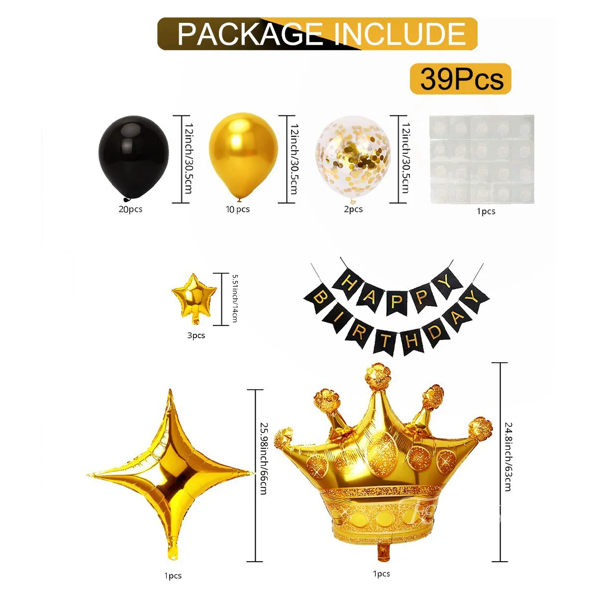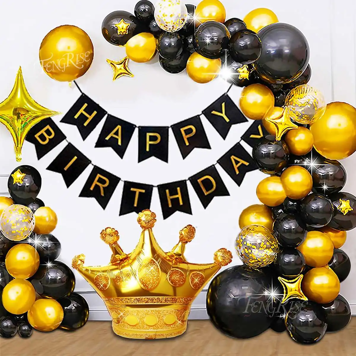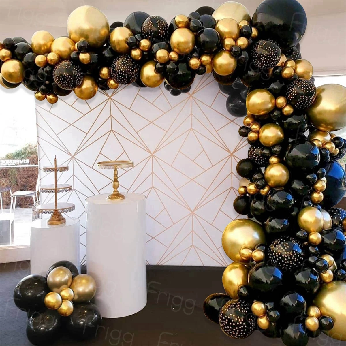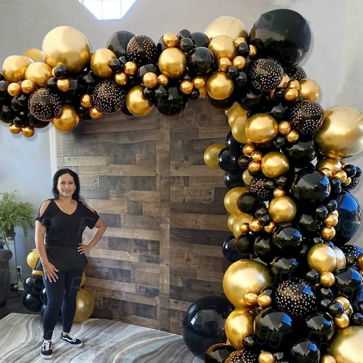 Черно-Золотая гирлянда с воздушными шарами из фольги