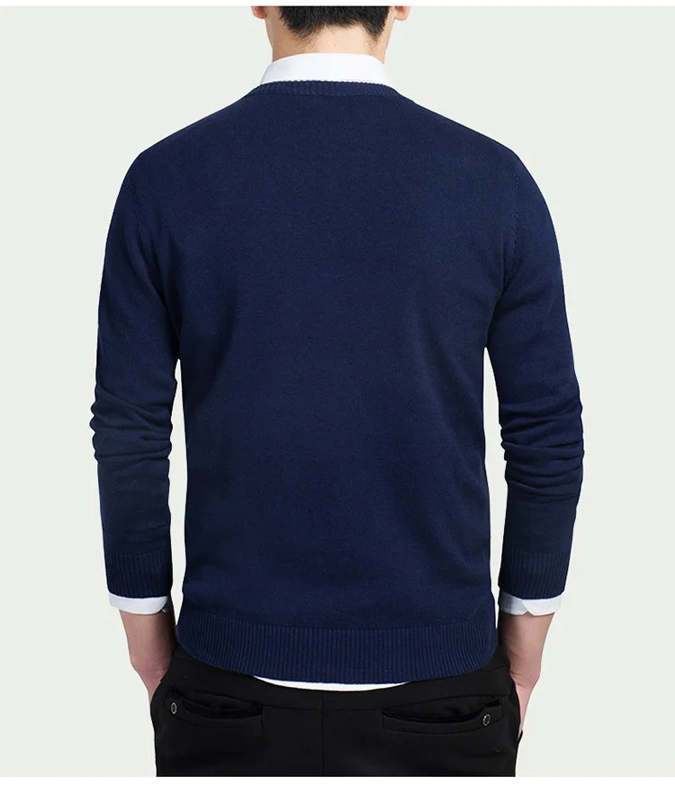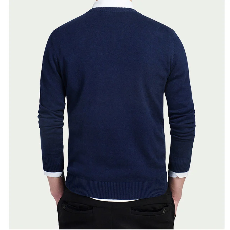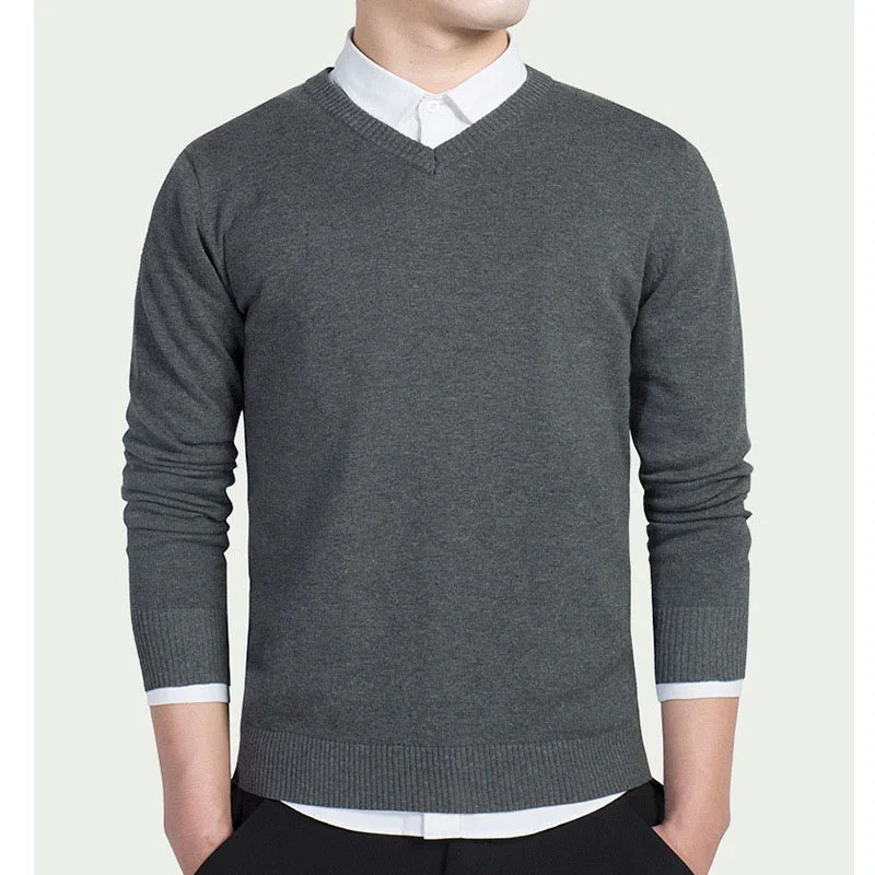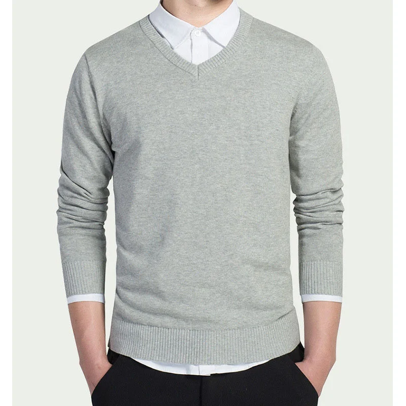 Мужской Хлопковый свитер с V-образным вырезом и длинным рукавом
