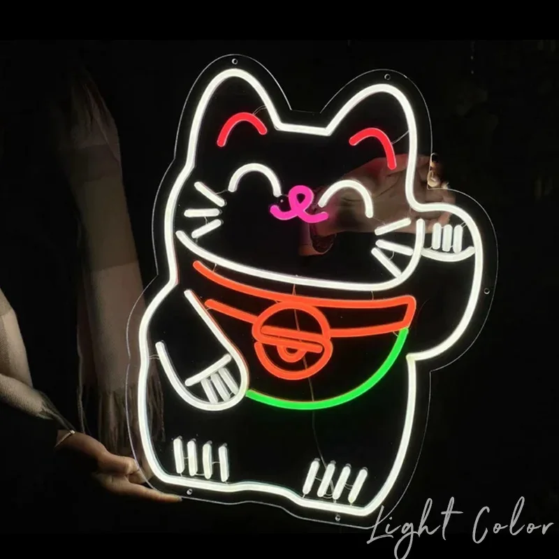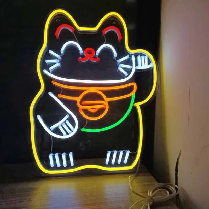 Неоновые вывески на заказ со светодиодной подсветкой в виде кошки удачи, японское аниме, гибкий ночник, внутренний Декор для спальни