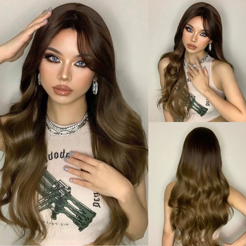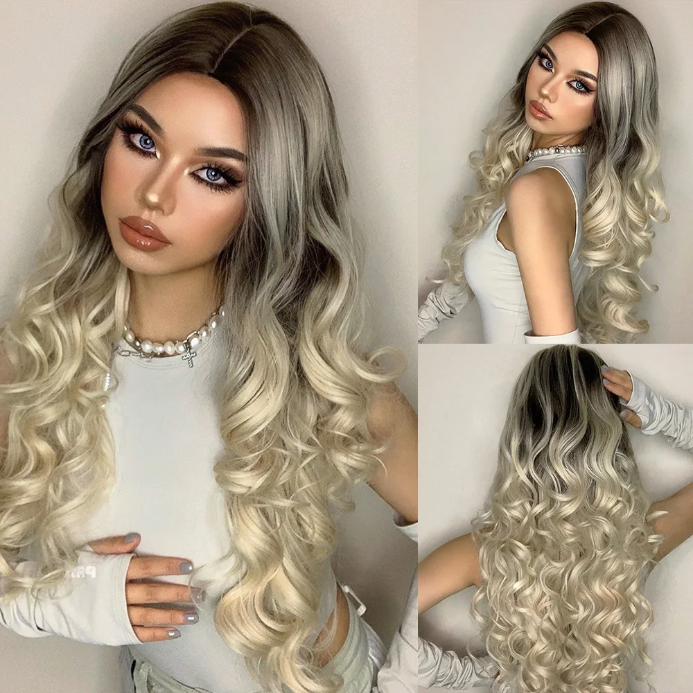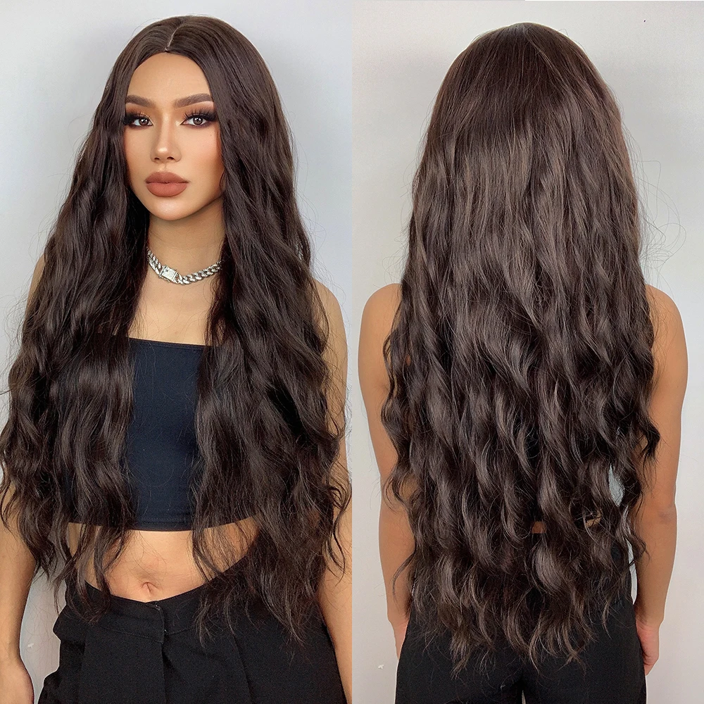 Длинные волнистые синтетические парики Element, Платиновый темно-коричневый парик для женщин, для косплея, для вечеринки, парики на каждый день, термостойкие волосы, бесплатная доставка