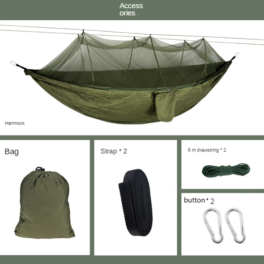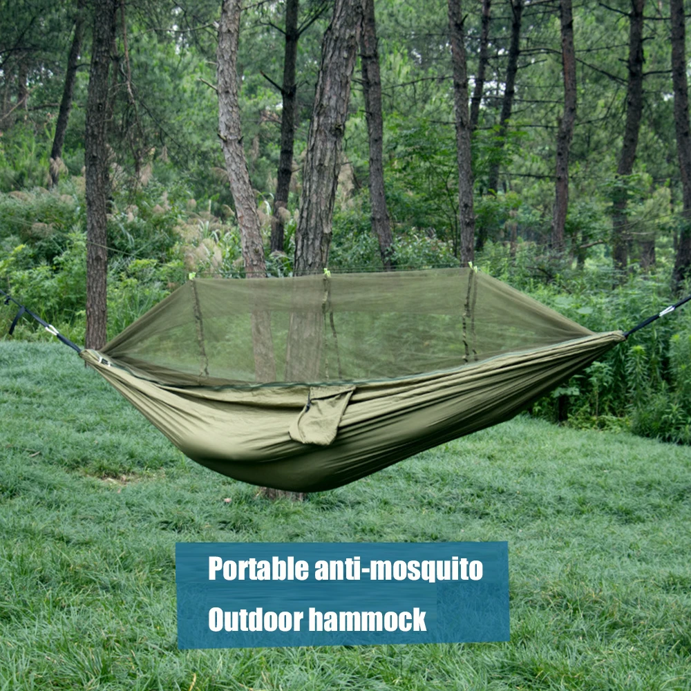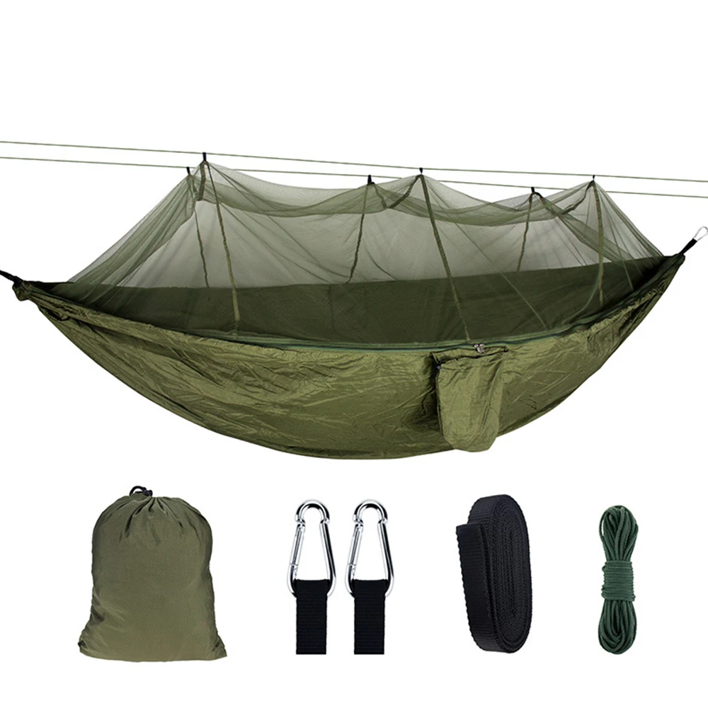 Портативный уличный гамак для кемпинга, подвесная кровать с москитной сеткой, высокопрочная, парашютная ткань, качели для сна на 1-2 человек