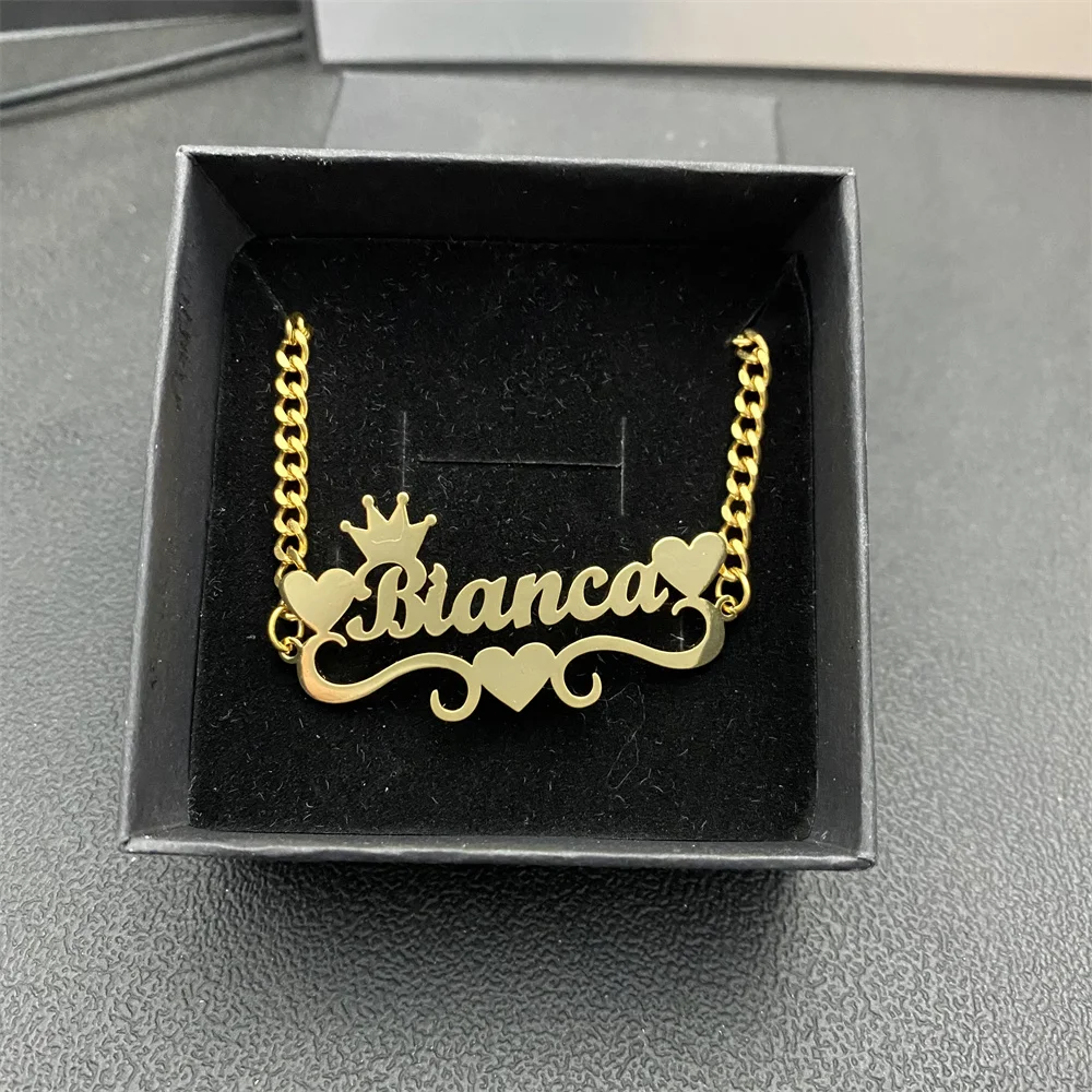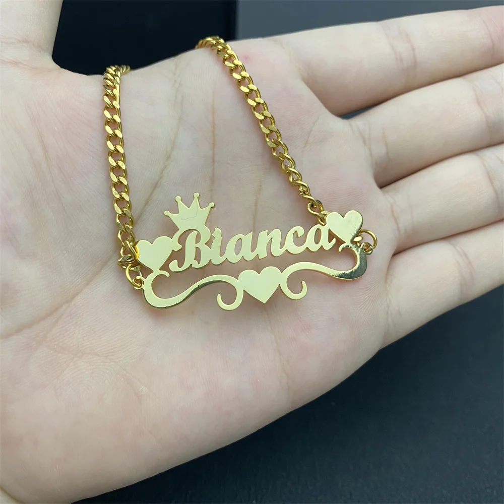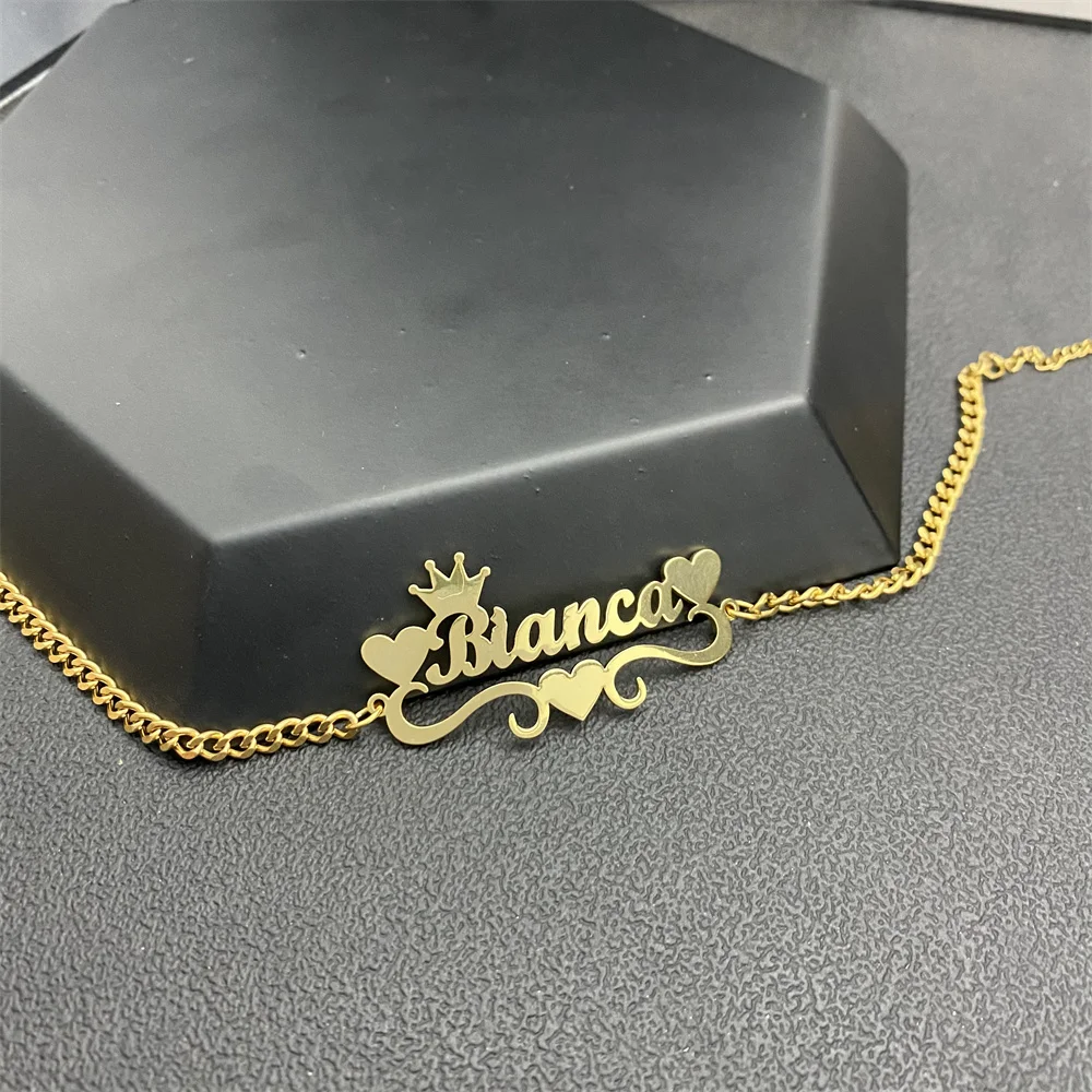 Ножной браслет VishowCo с именем под заказ, из нержавеющей стали, кубинская цепь, персонализированный ножной браслет с именем короны сердца, ювелирные изделия для женщин, подарки