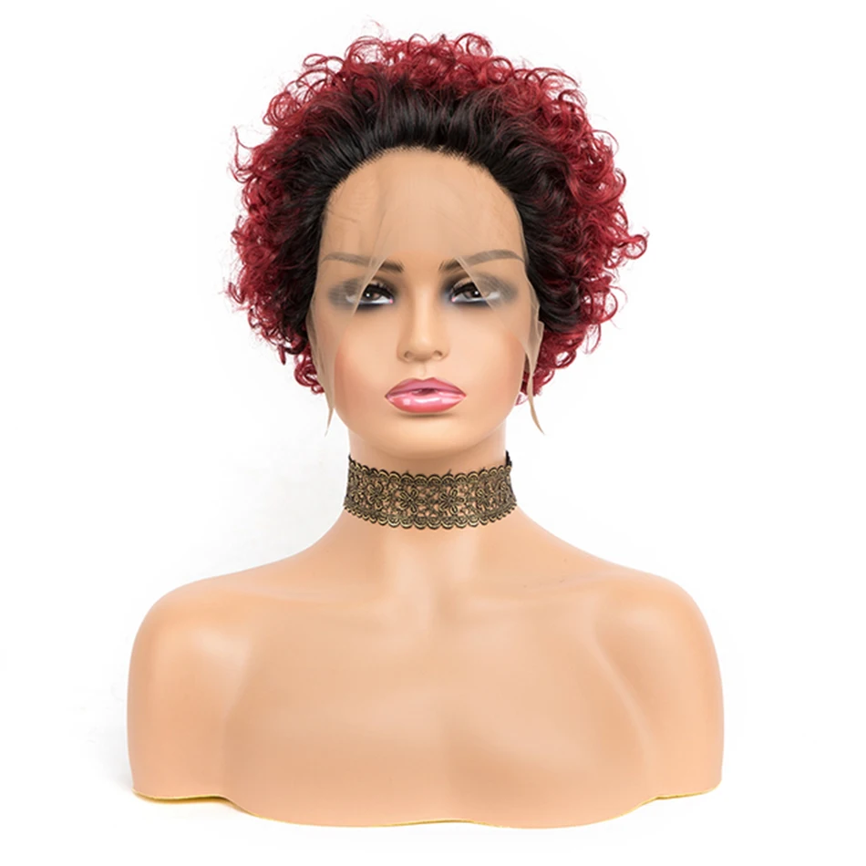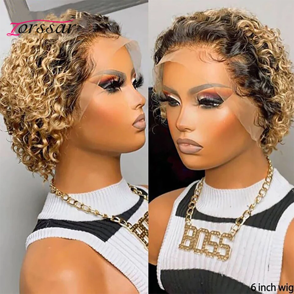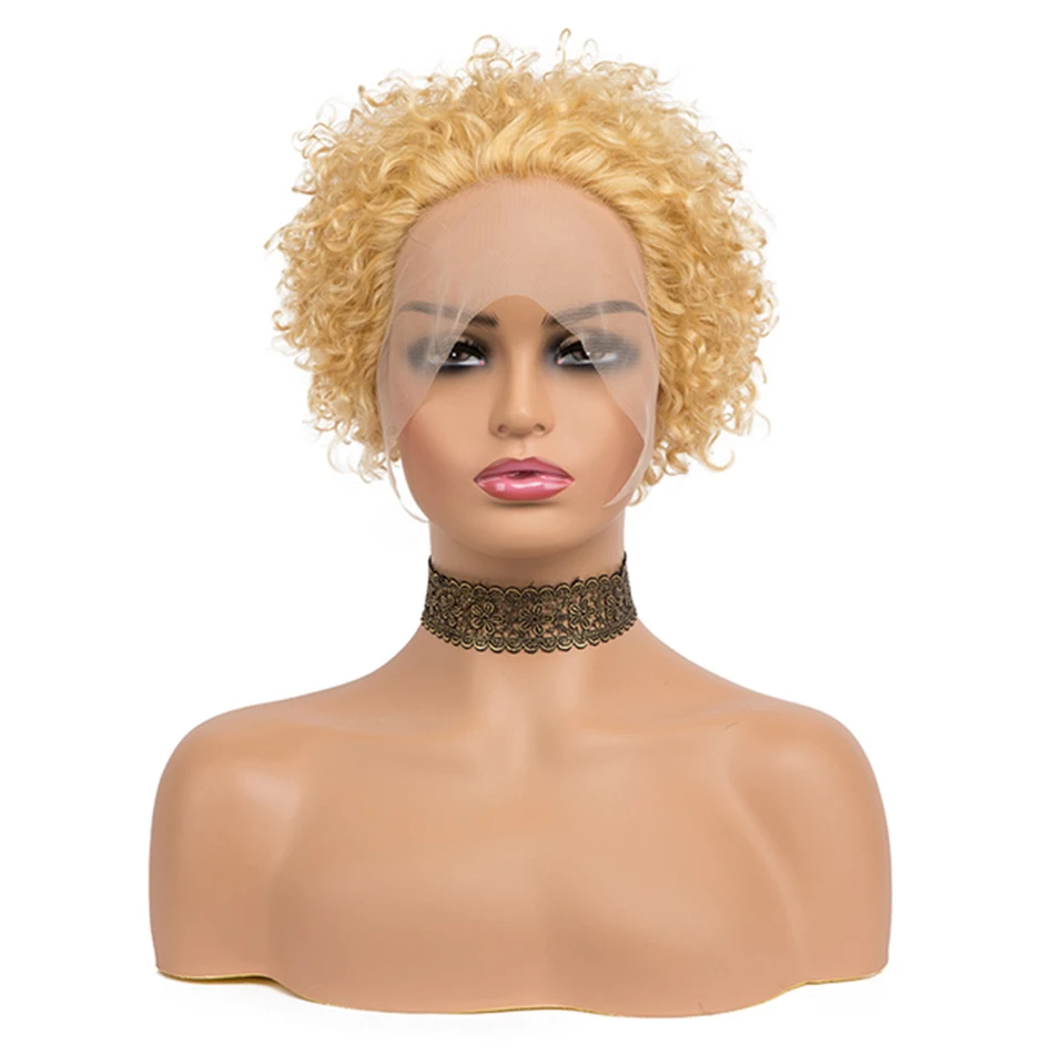 Короткие вьющиеся кружевные передние парики 13x1 бразильские водные волнистые человеческие волосы парики вырезанные в темноте прозрачные парики для черных женщин