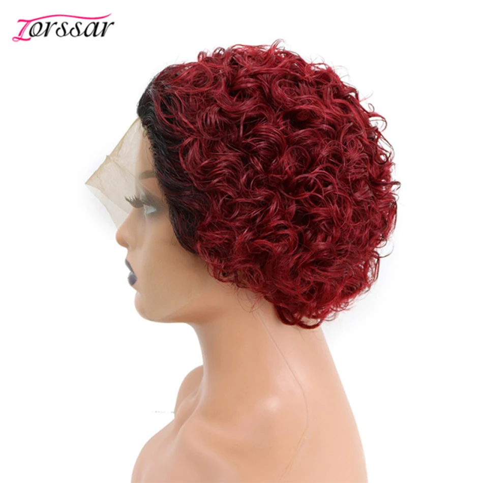 Короткий кудрявый Синтетические волосы на кружеве парики 13x1 бразильский вода волна человеческих волос парики из натуральных волос, короткая стрижка, прозрачный кружевной парик для черных Для женщин Zorssar волос