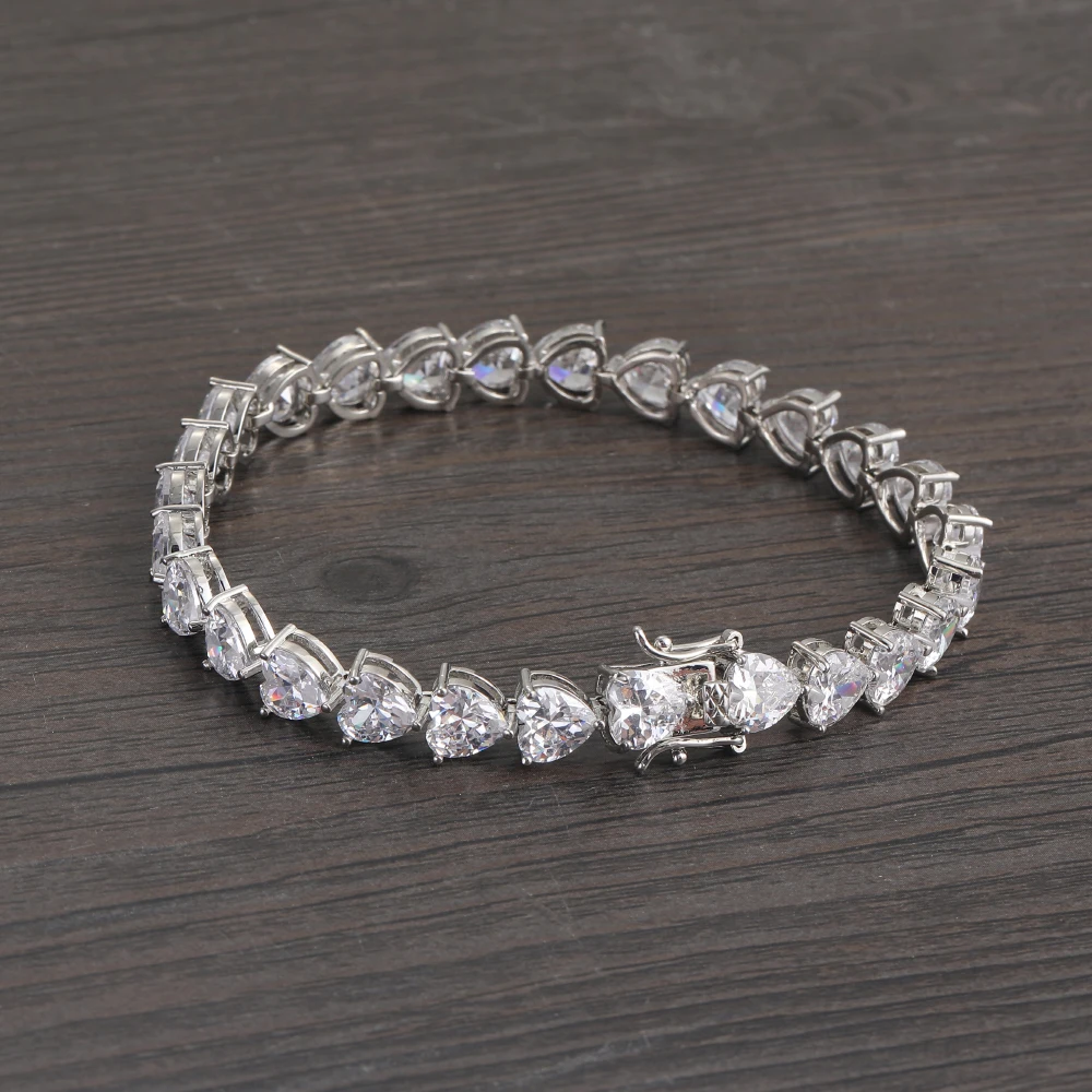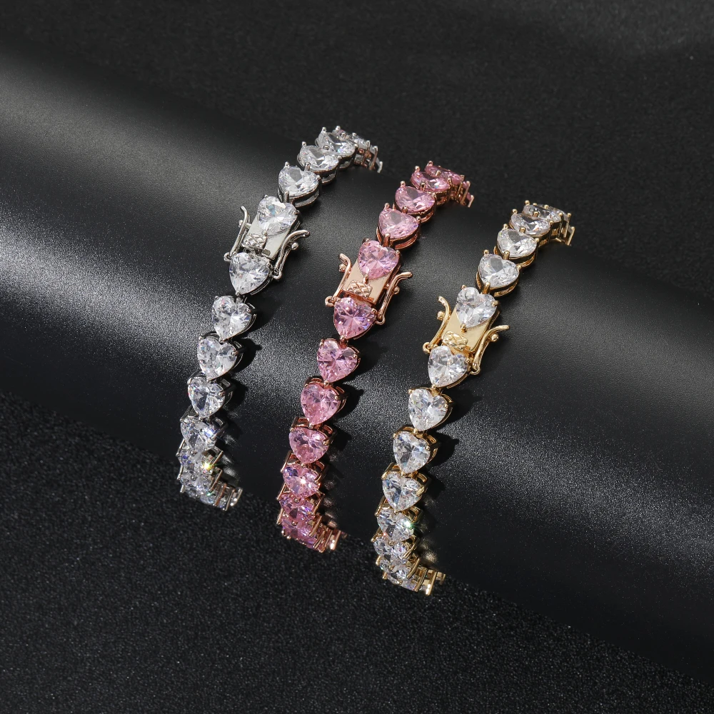 7 мм браслет для тенниса в форме сердца, латунная закрепка, циркониевые ювелирные изделия, украшения, сверкающие BB111