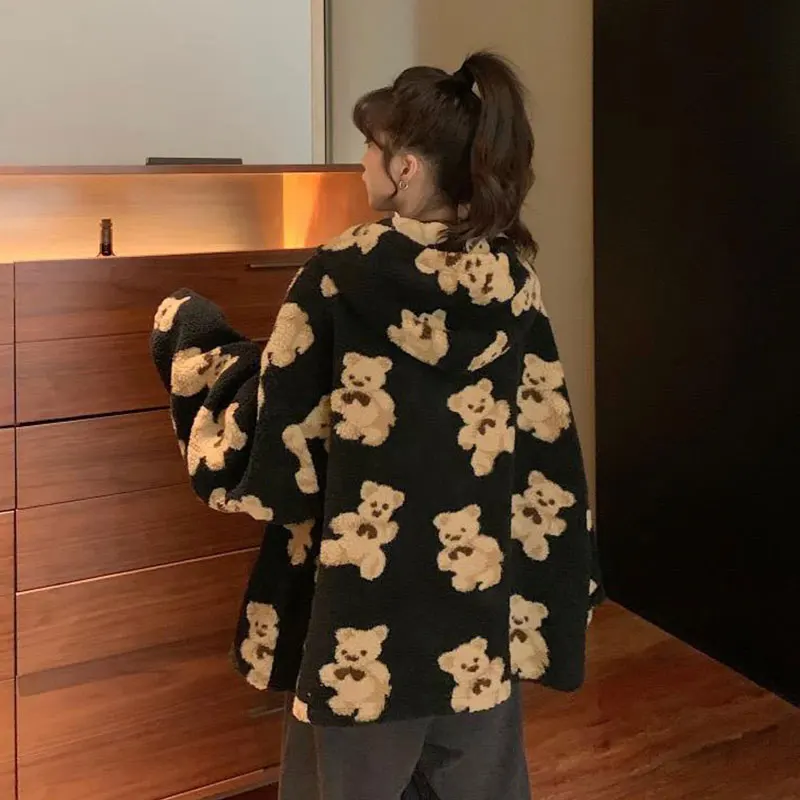 Толстовка Женская из овечьей шерсти, на молнии, с мультяшным медведем