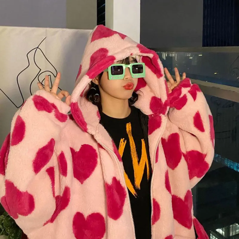 Y2K весенне-зимняя плюшевая ретро одежда на молнии свитшоты большог...