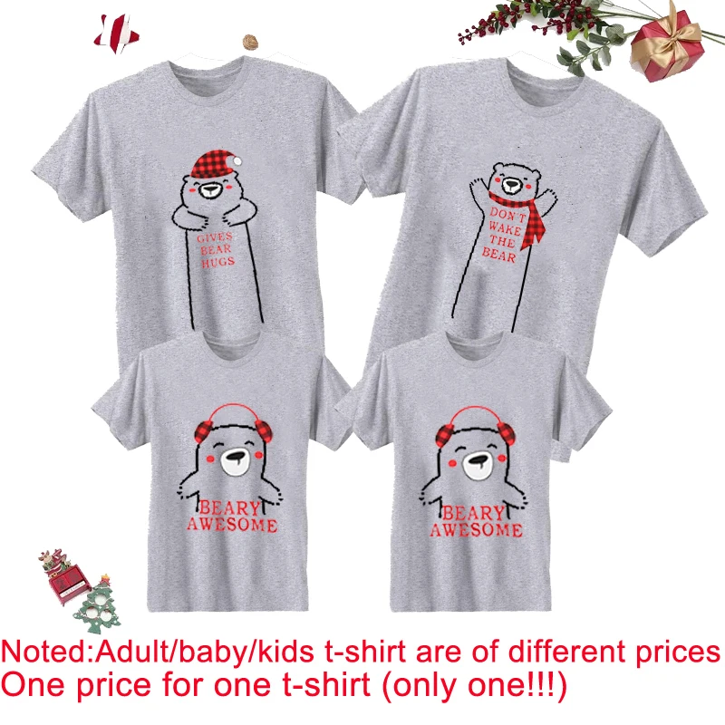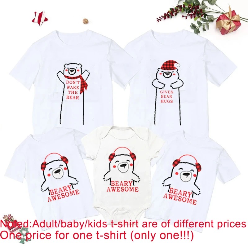Одинаковая хлопковая одежда для матери, отца, дочери, сына, рубашки с надписью и принтом медведя, семейные рождественские Мультяшные наряды