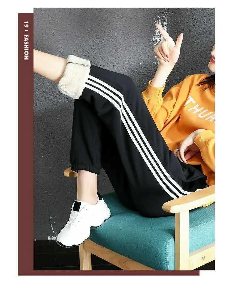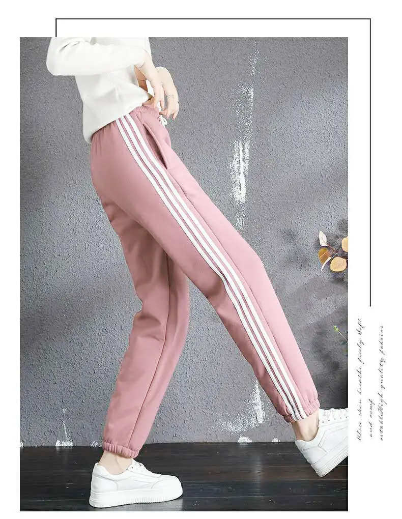 Модные женские зимние теплые длинные брюки, флисовые плотные леггинсы, женские Однотонные эластичные повседневные леггинсы на шнуровке, брюки в полоску