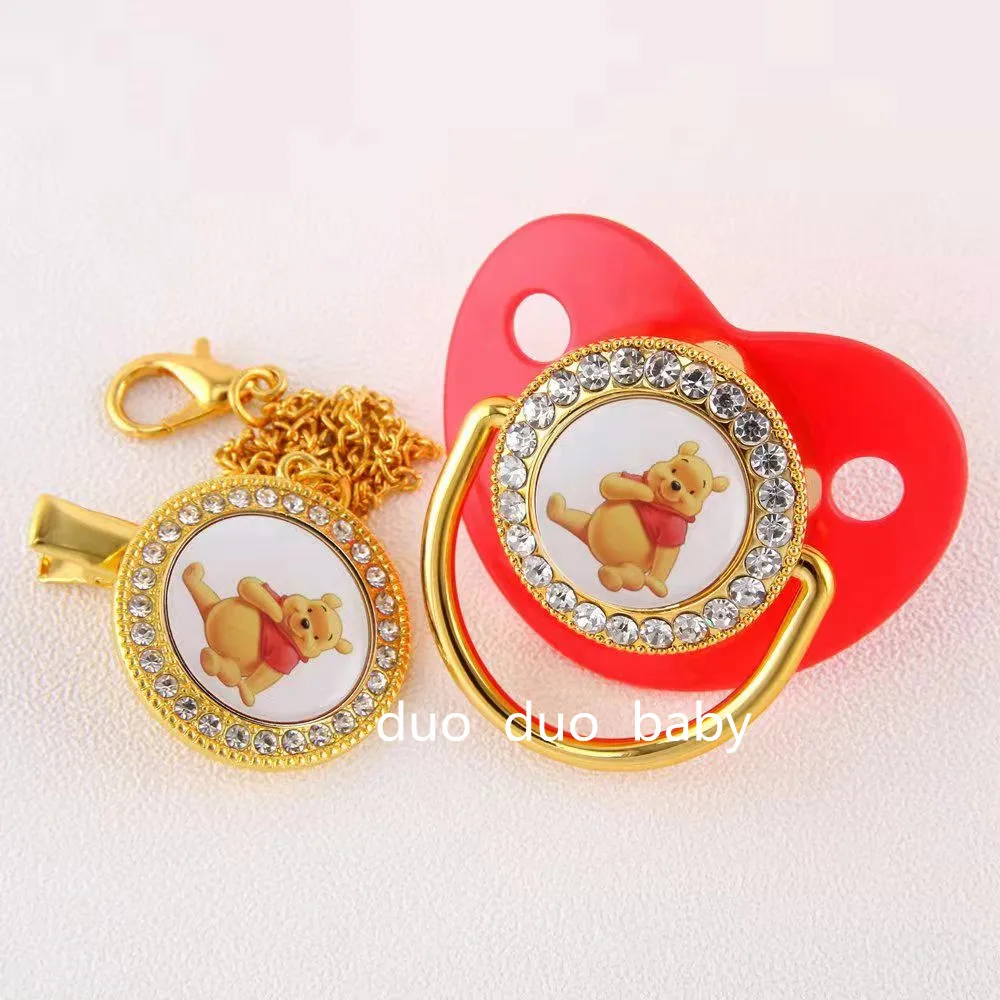 Дисней Винни-Пух, держатель для детской соски, украшение из горного хрусталя, цепочка для соски и соски для детей, силиконовый зажим для соски