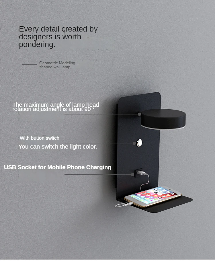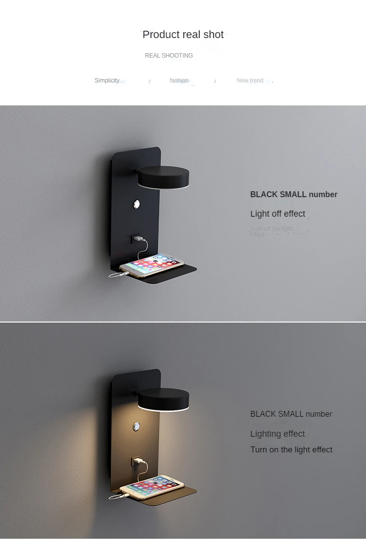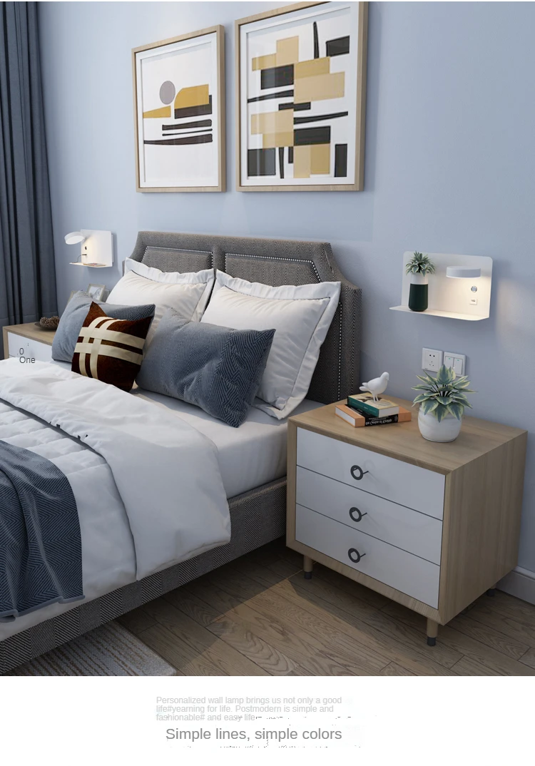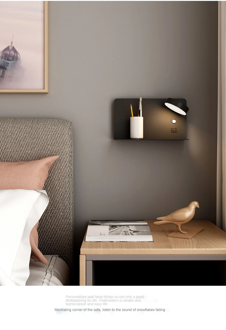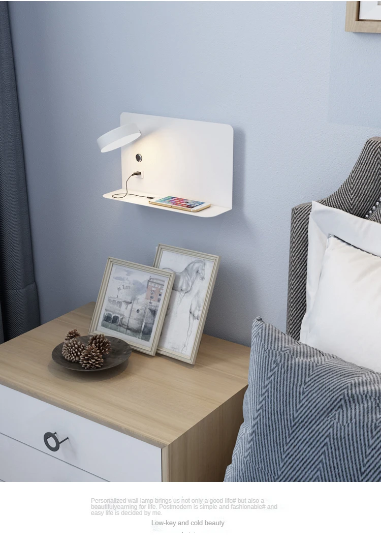 Светодиодная настенная лампа, комнатный светильник для спальни, прикроватная лампа, современный минималистичный светильник в скандинавском стиле с зарядкой от usb, черные и белые лампы