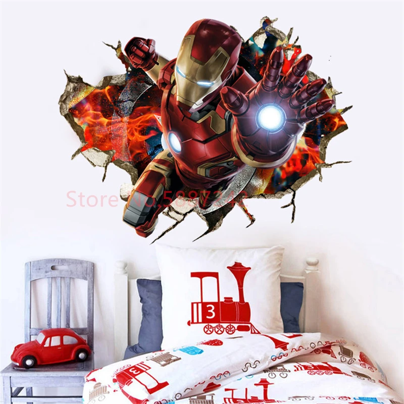 Наклейки на стену мстители, виниловые самоклеящиеся обои с изображением Железного Человека-паука для детской комнаты, спальни, домашнего декора