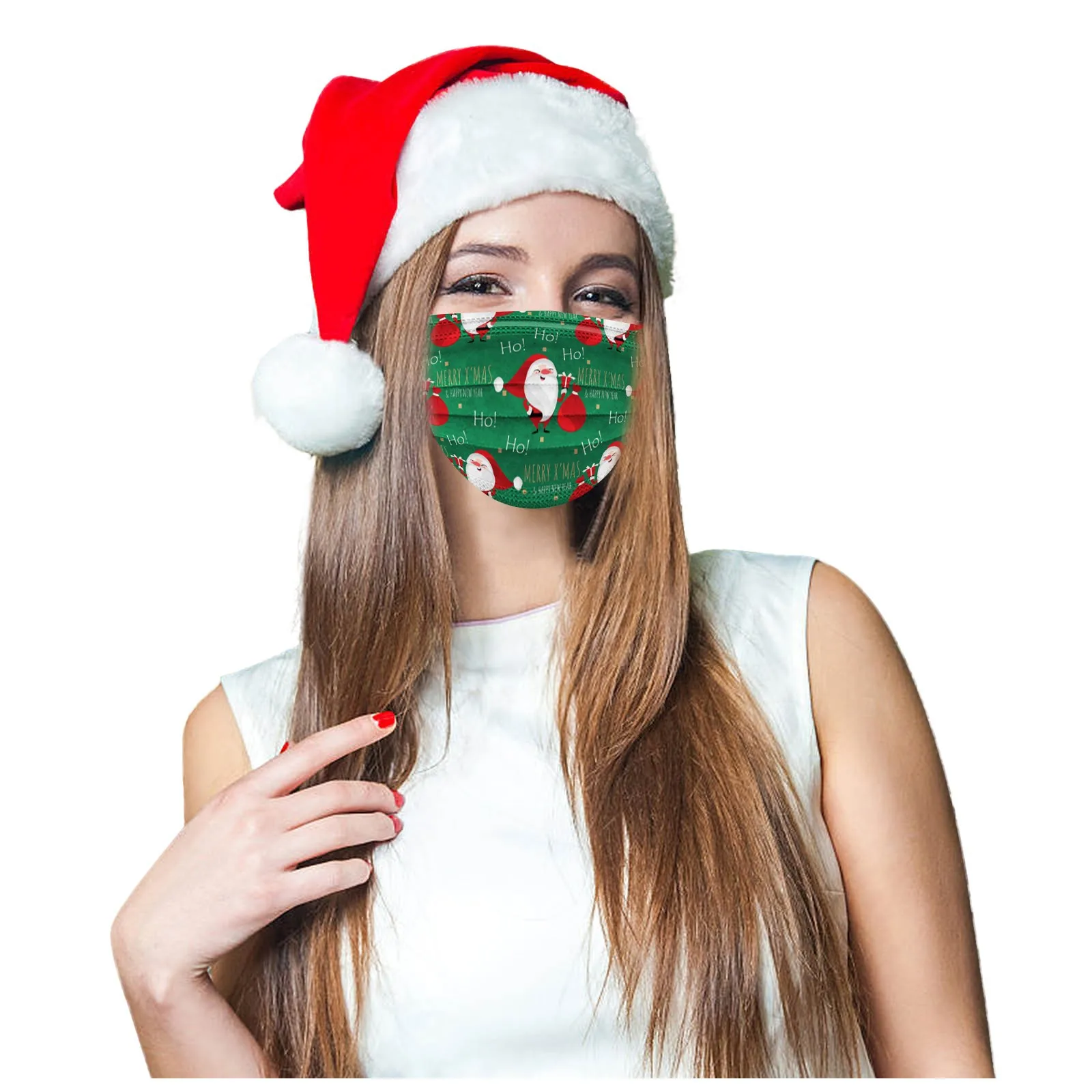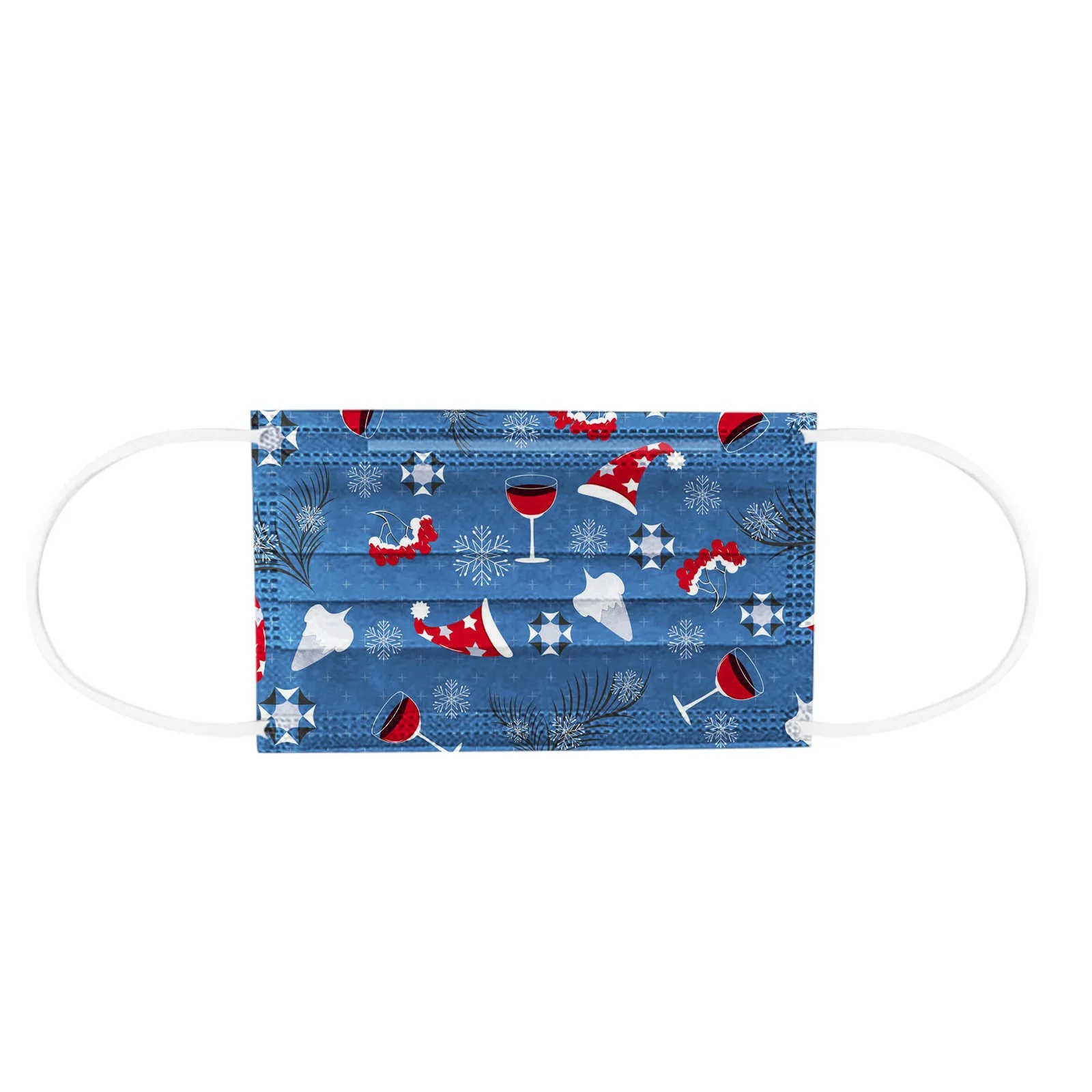 Маска одноразовая рождественвечерние с принтом Санта-Клауса, оленя, 10 шт.