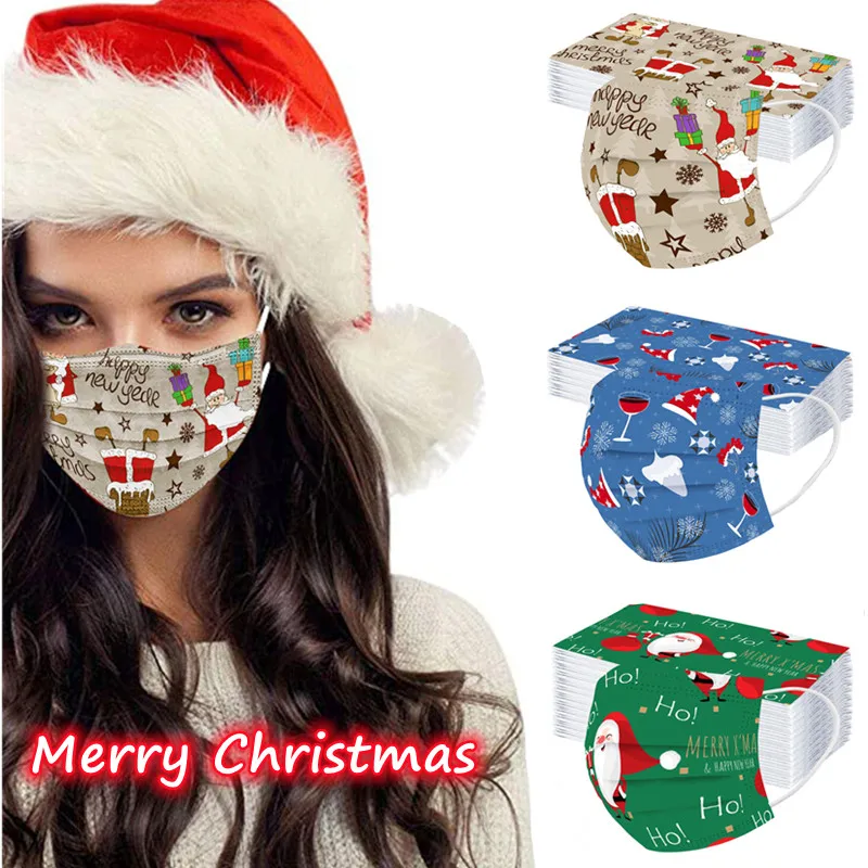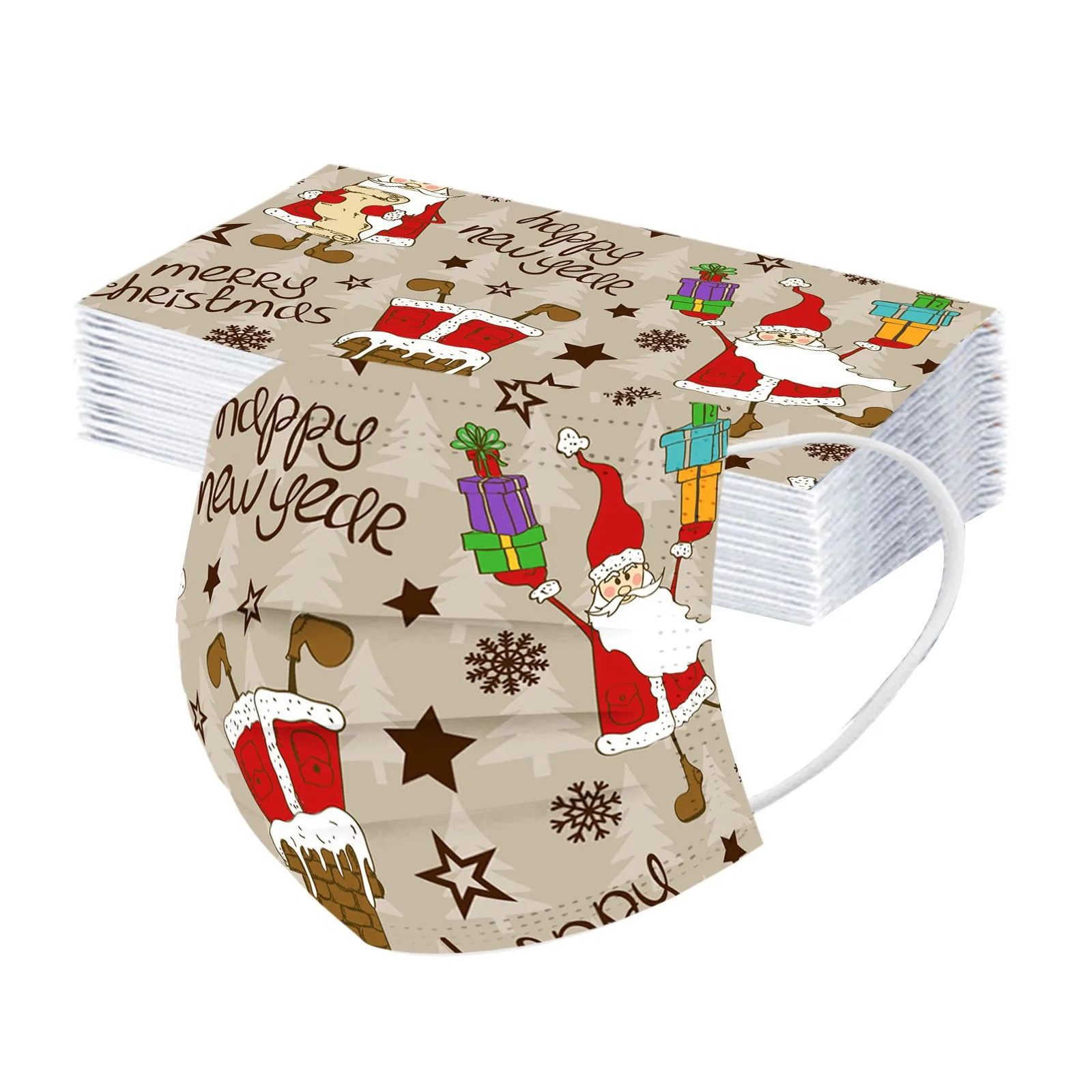 10 шт., Рождественская маска для взрослых и детей, одноразовая Рождественская маска для лица с принтом Санта Клауса, оленя, Navidad, маска, тушь для ресниц, вечерние украшения, подарок