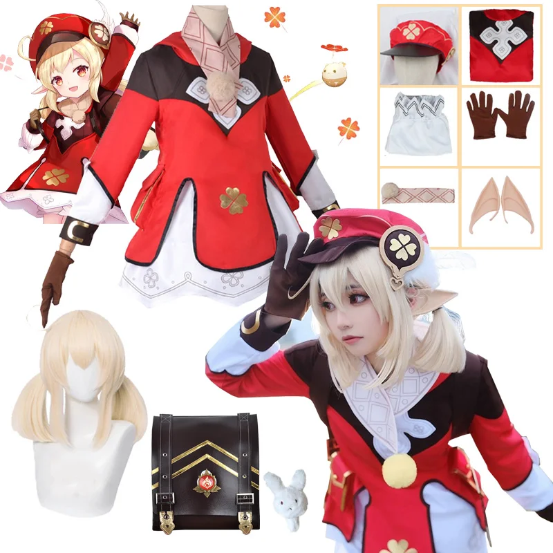 Костюмы для косплея Genshin Impact Klee, рюкзак с париками, одежда для вечеринки с Лали и эльфийскими ушками, униформа для женщин, костюмы на Хэллоуин и карнавал