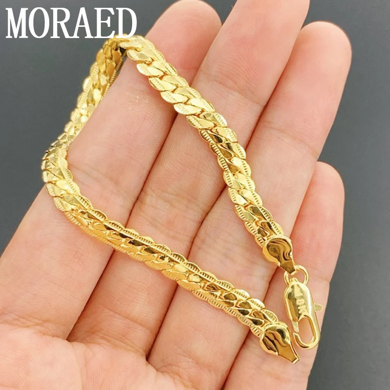 Высококачественный Браслет из стерлингового серебра 925 пробы с плоской боковой цепью 5 мм, браслет из 18-каратного золота для мужчин и женщин, подарок для вечевечерние