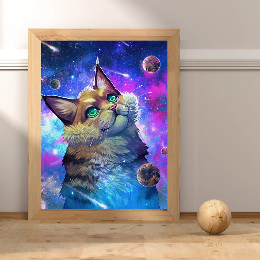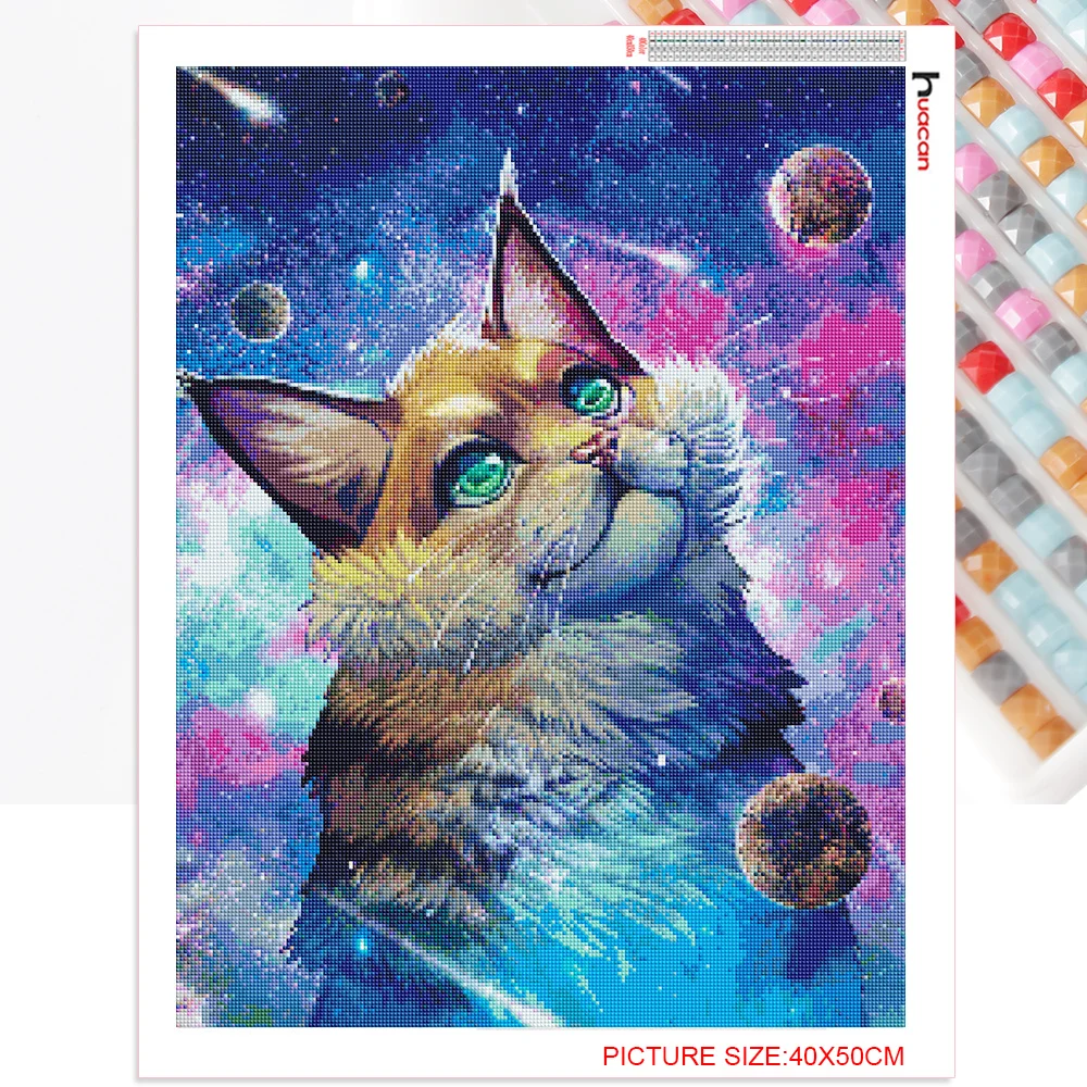 Huacan, полноразмернаякруглая Алмазная мозаика, кот, Вселенная, 5D алмазная живопись, искусственная вышивка, подарок, украшение для дома