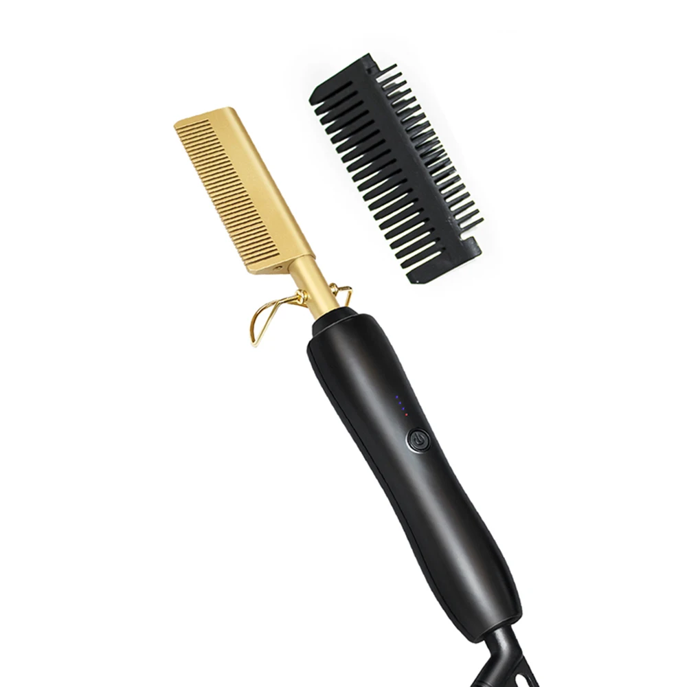Прямая расческа для вьющихся волос Электрический нагревающий выпрямитель для волос как сухой, так и влажный Регулируемый температурный инструмент для волос