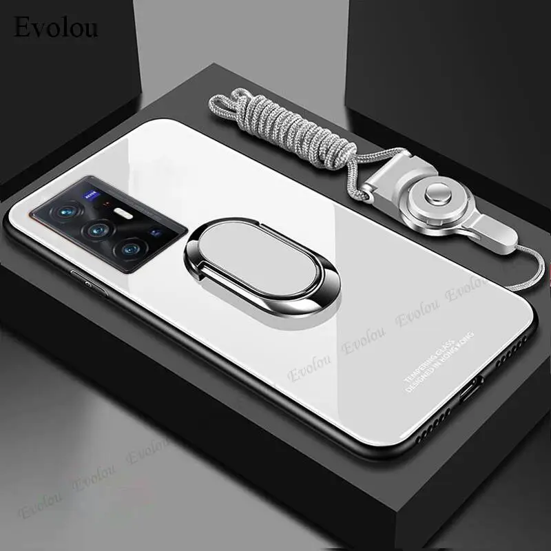 ДЛЯ VIVO X70 Pro Plus чехол из закаленного стекла с шнуром для ожерелья и шнура для VIVO X60 X50 X30 X27 Pro X23 X21 чехол с магнитной подставкой