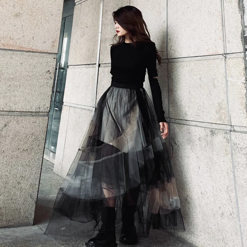 Юбка в сеточку UMI MAO Yamamoto, многослойная юбка из сетчатой ткан...