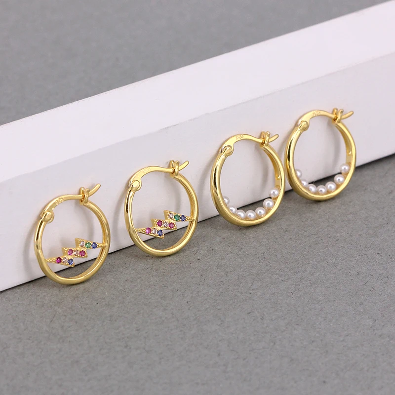 Женские серьги-кольца CANNER из стерлингового серебра 925 пробы, с разноцветным цирконием и жемчугом, серьги-кольца для ушей, серебряные ювелирные изделия 925 пробы, подарки