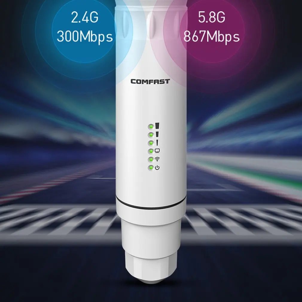 Особенности: 1. Улучшенный усилитель Wi-Fi: Устраняет слепые точки Wi-Fi. Этот Wi-Fi усилитель 1200 Мбит/с, 2,4 ГГц частотный диапазон, быстро и легко увеличить покрытие сети Wi-Fi, для того чтобы достигнуть ровного и быстрая передача данных. 2. Ретранслятор WLAN Three-in-one: Этот ретранслятор WiFi поддерживает режимы AP, repeater и router. Порт Ethernet LAN/WAN может подключаться к любому линейному устройству и идеально совместим с большинством стандартов IEEE 802.11ac/n/g/b. 3. Усилитель WLAN WiFi Расширение покрытия: Wi-Fi ретранслятор соединяет Ethernet LAN с вашим смарт-ТВ, ПК, игровой консоли, потоковой медиа-бокс и т. Д. К домашней сети. Режим ретранслятора расширяет вашу предыдущую сеть Wi-Fi для быстрого беспроводного использования. 4. Простота установки и установки: Простота в использовании, настройка одной кнопкой. Мини-практичный двойной антенный дизайн, мобильный и гибкий, очень подходит для дома, путешествий и офиса. 5. Оснащен двухдиапазонной всенаправленной съемной наружной антенной 2 * 5dBi, она может поддерживать диапазон покрытия до 100-200 м в условиях, свободных от преград, удовлетворение потребностей беспроводного покрытия на большие расстояния на открытых площадях, стадионах, живописных местах, парках и игровых площадках. Описание: Ретранслятор Wi-Fi соединяет Ethernet LAN с вашим смарт-телевизором, ПК, игровой приставкой, потоковым медиа-боксом и т. д. к домашней сети. Режим ретранслятора расширяет вашу предыдущую сеть Wi-Fi для быстрого беспроводного использования. Характеристики: Скорость передачи: 1200 м Стандарт беспроводной связи: IEEE 802.11n Покрытие: 300 метров Водонепроницаемость: IP66 Материал: АБС-пластик Размер: 380*54 мм Посылка включает в себя: 1 шт. * беспроводной маршрутизатор 2 шт. * кабельные стяжки из нержавеющей стали 1 шт. * Мощность 1 шт. * Сетевой Кабель 2 шт. * Винт 1 шт. * Инструкция