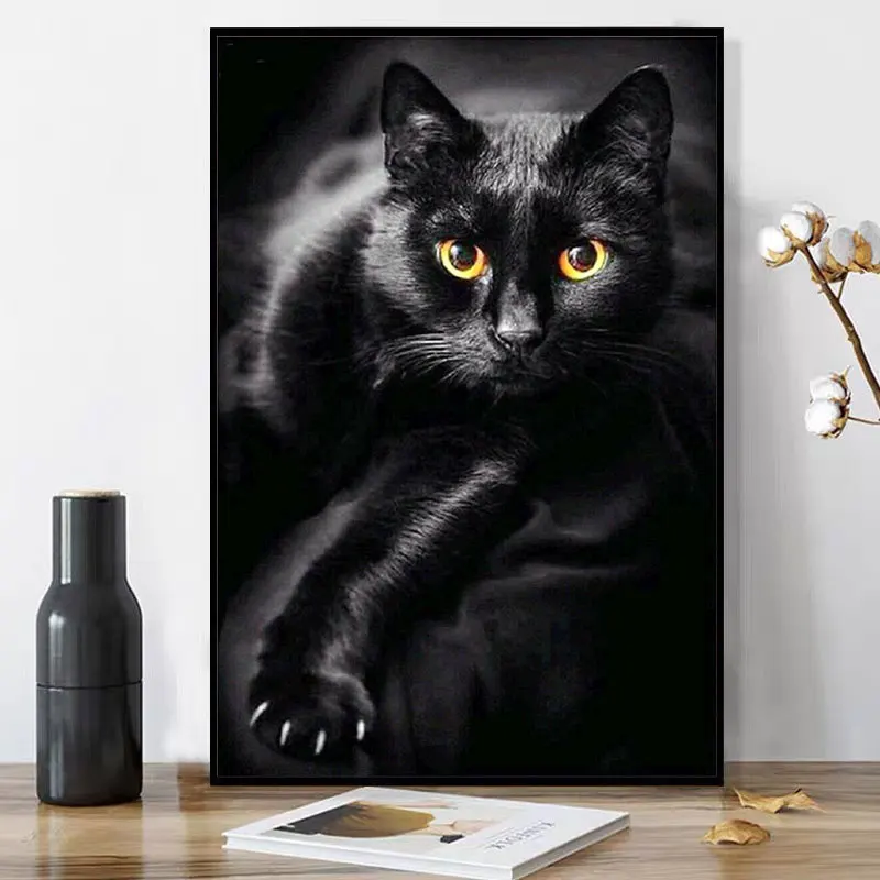 УNisonju 5D алмазная картина черная кошка Алмазная вышивка полностью квадратная или круглая Алмазная Картина Вышивка крестом мозаика домашний декор
