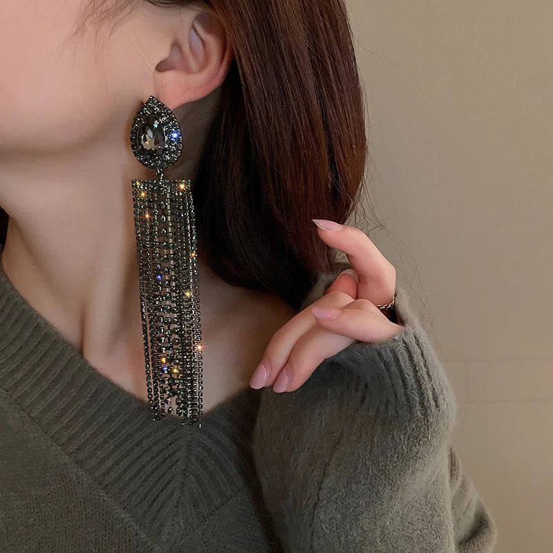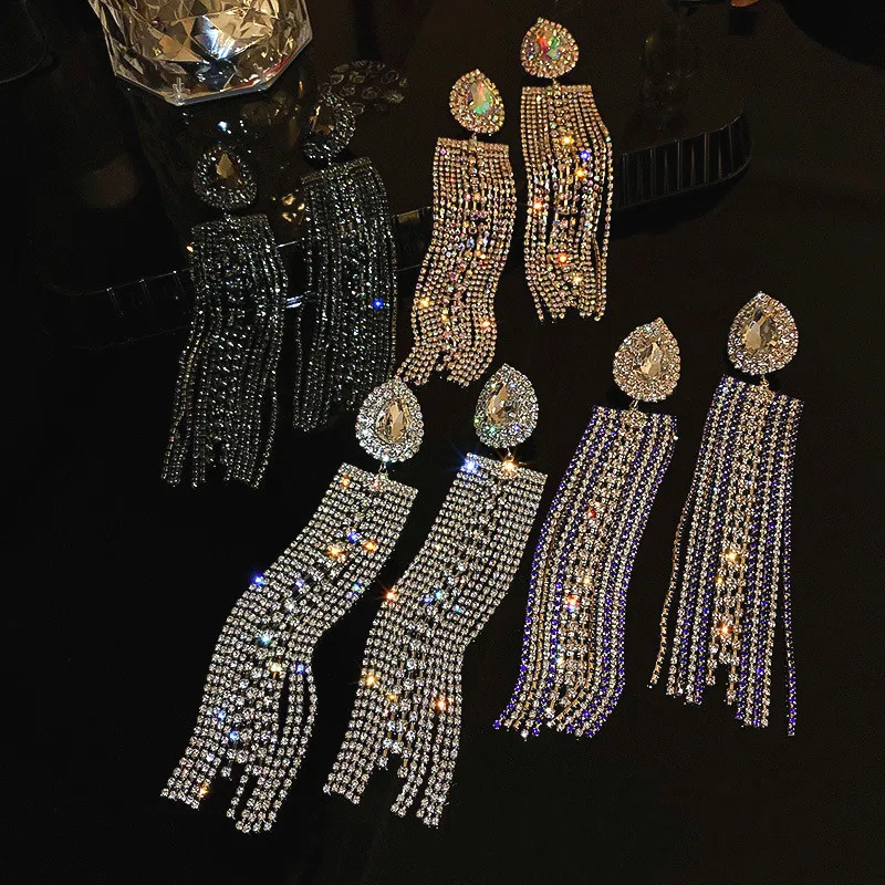 Форма: серьги с кристаллами и кисточками в виде капель водыМатериал:С украшением в виде кристаллов