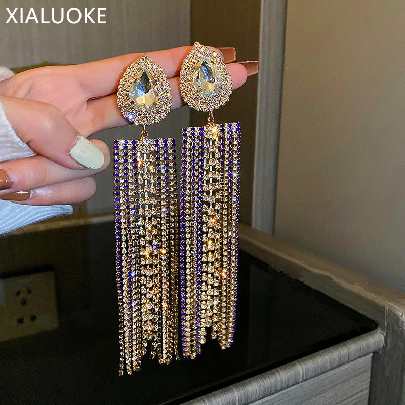 XIALUOKE 2022 новые длинные кисточки кристаллы геометрические капли воды серьги для женщин серьги гиперболы Свадебные модные ювелирные изделия