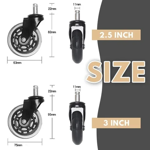 В отличие от пластиковых колесиков, эти высококачественные Мягкие колеса из полиуретана вызывают Не повреждает пол любого типа. Эти колеса прослужат дольше, чем ваши средние колесики для офисного кресла.