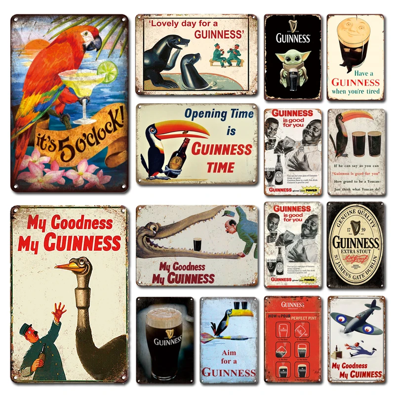 Винтажный пивной коктейльный металлический декор жестяной знак Гинн...