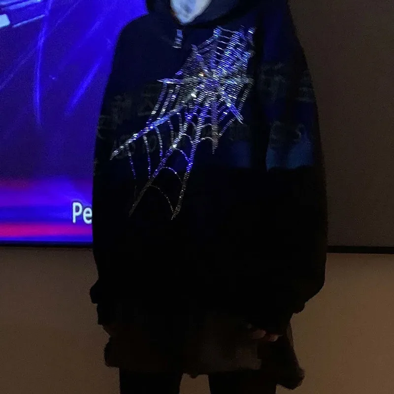 Стразы худи с пауком паутиной женская готическая панковская куртка ...