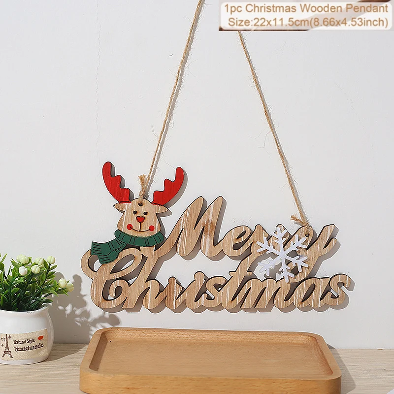 Санта-Клаус двери украшения деревянный подвесной кулон Счастливого Рождества украшения для дома 2021 рождественские детские подарки новый год 2022 Navidad