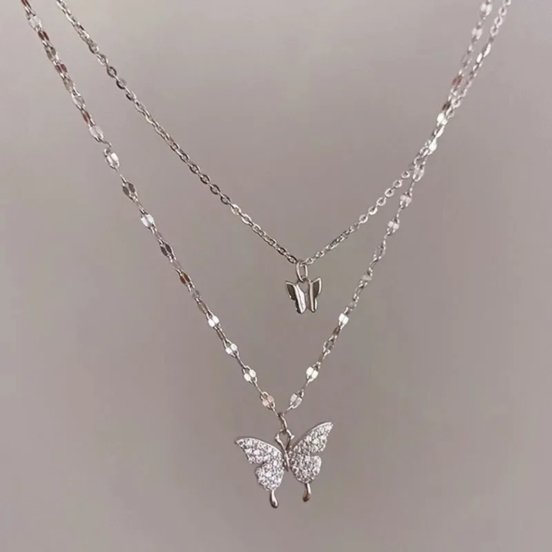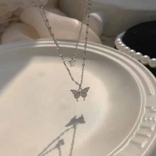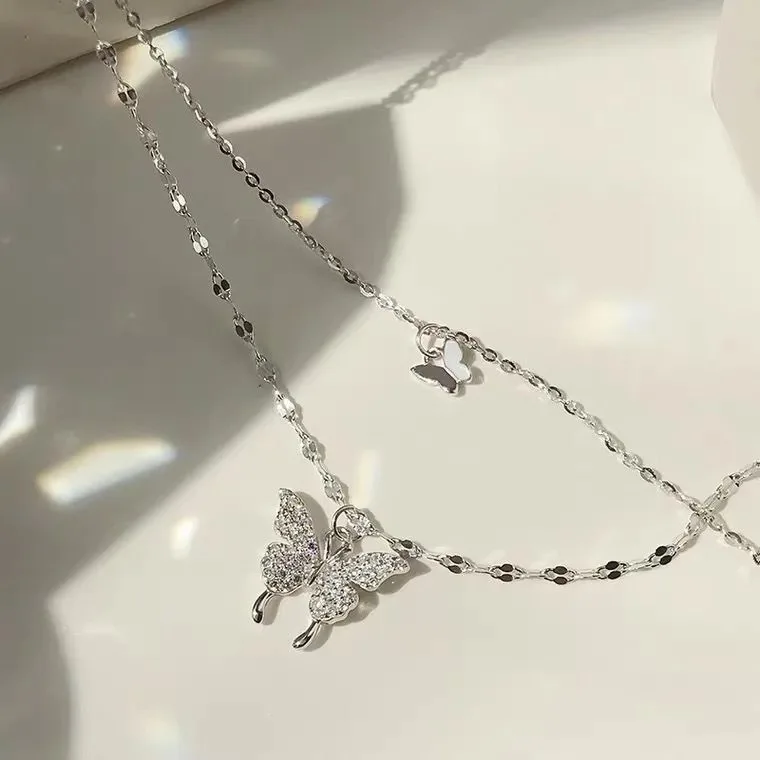 Новое блестящее ожерелье с бабочкой, женское изысканное Двухслойное ожерелье с цепочкой до ключиц, ювелирные изделия для женщин в подарок