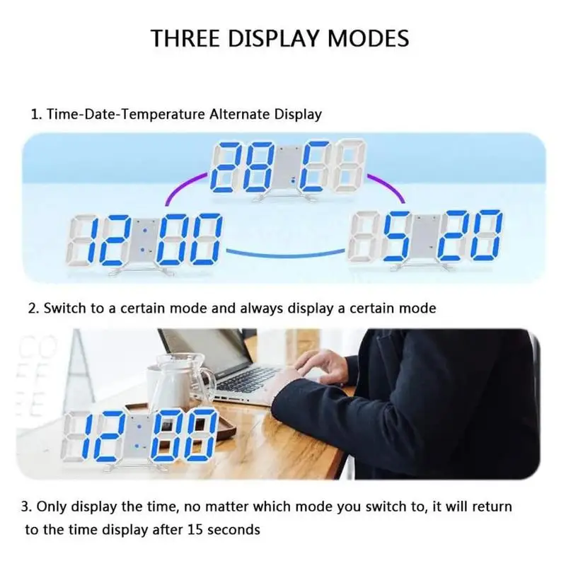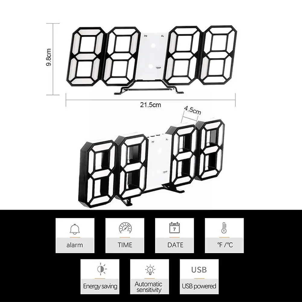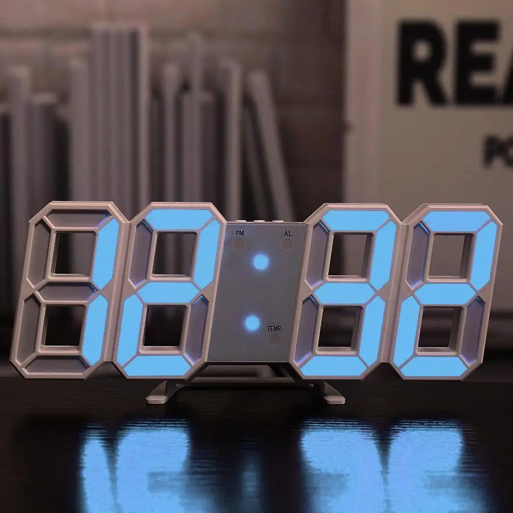 Большие 3d светодиодные цифровые настенные часы с отображением даты по Цельсию