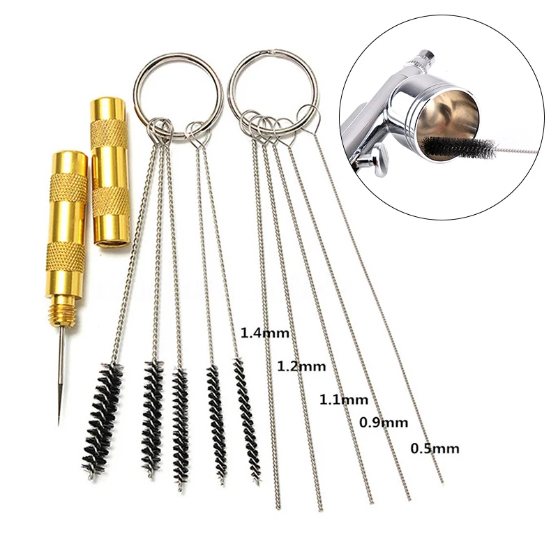 Набор распылителей 11 шт.компл., набор инструментов для чистки, игла и щетка для аэрографа, практичный комплект для чистки, насадка распылителя, прочные аксессуары для ремонта
