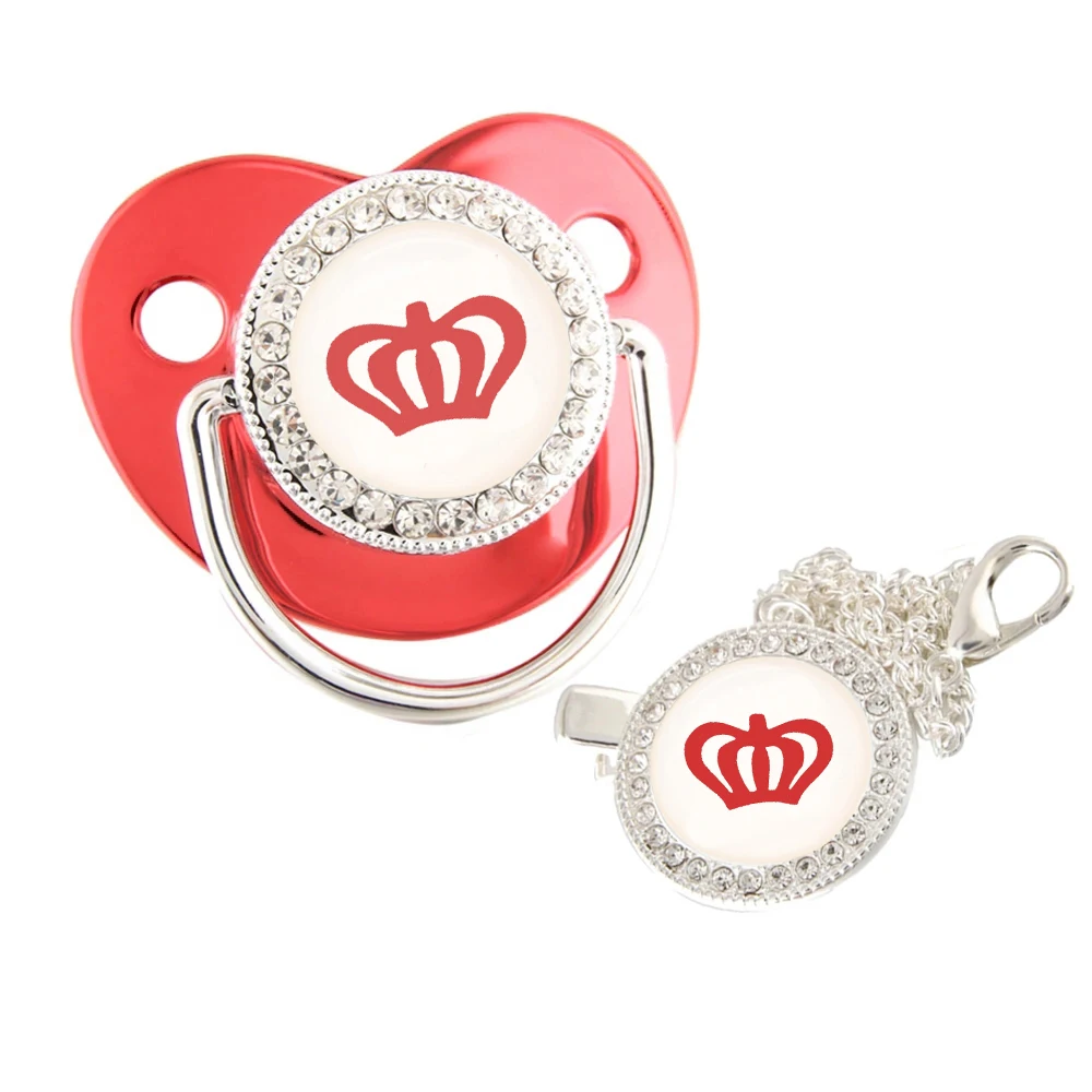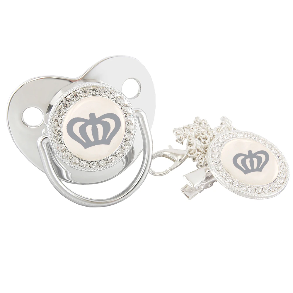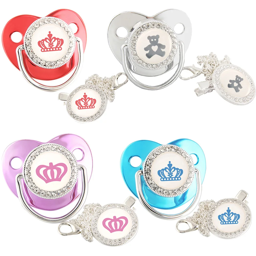 Роскошный Металлический соска для младенцев 0-12 месяцев, серебристый, синий, фиолетовый, красный цвет, соска для младенцев, BPA бесплатно, манекен, корона, медведь, детский душ, уникальный подарок