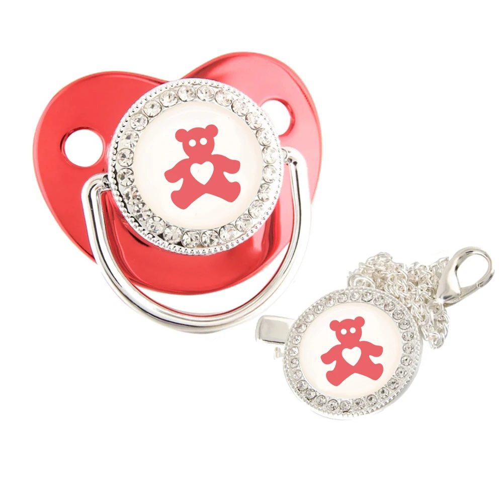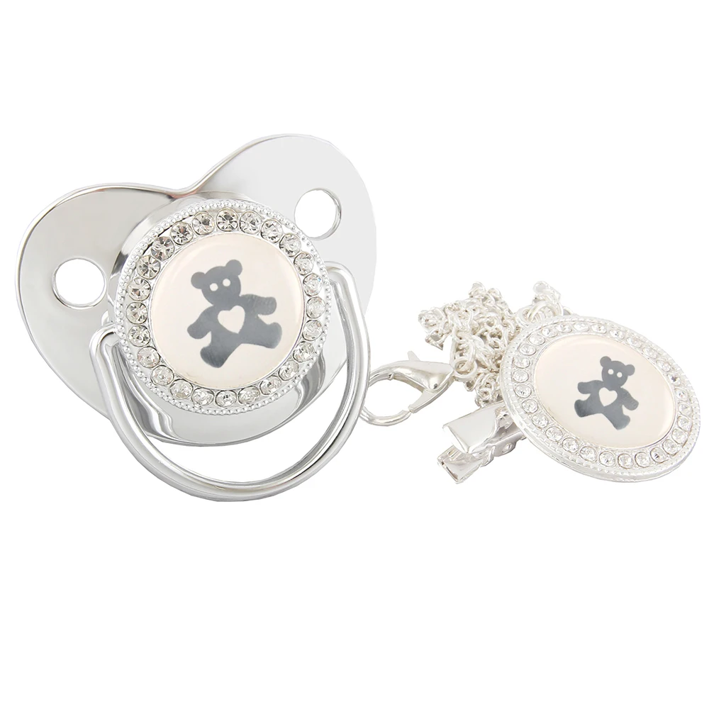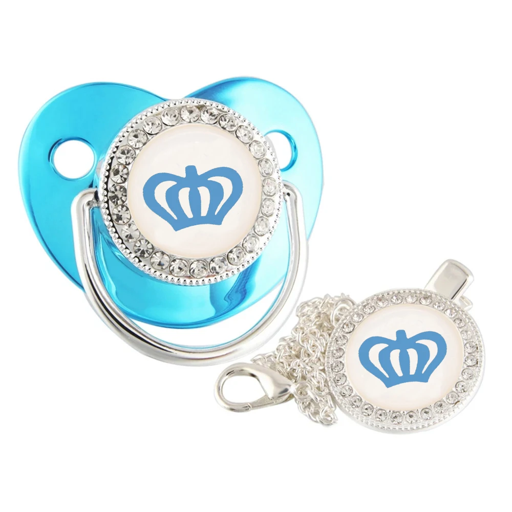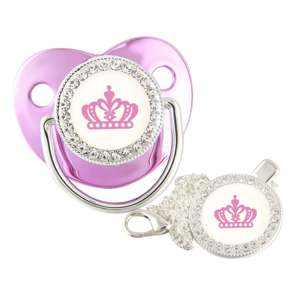 Роскошный Металлический соска для младенцев 0-12 месяцев, серебристый, синий, фиолетовый, красный цвет, соска для младенцев, BPA бесплатно, манекен, корона, медведь, детский душ, уникальный подарок