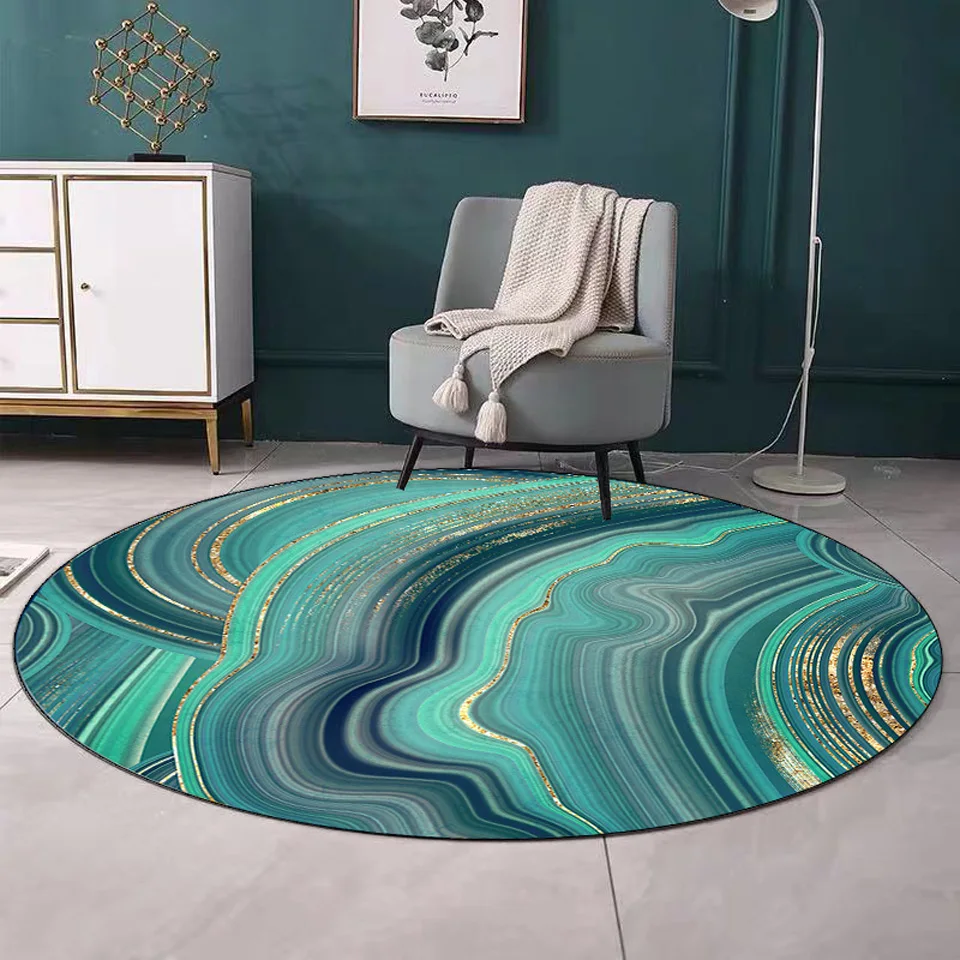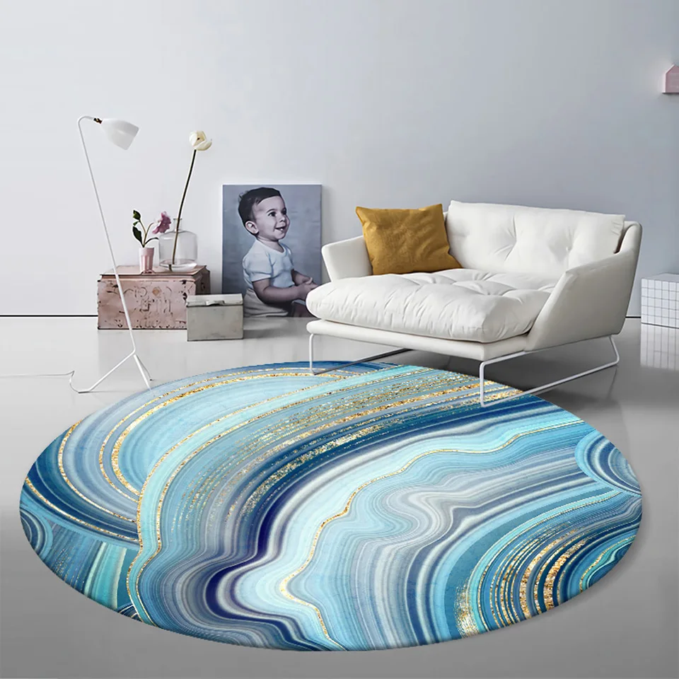 Коврики и ковры для дома, гостиной, модный абстрактный синий, розовый, зеленый и золотой мраморные прожилки, круглый коврик для спальни, стул, коврик