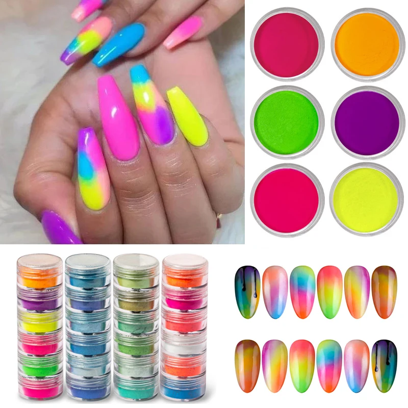 100% новый и высокое качество Размер: 9*3 см Вес нетто: 6 г Цвет: 6 цветов Цвет s комплект, как на фото Мелкий порошок, легко наносится Посылка включает в себя: Упаковка: 1*6 коробок неоновой пыли для ногтей (1 дюйм = 25,4 мм или 1 мм = 0,0393 дюйма)