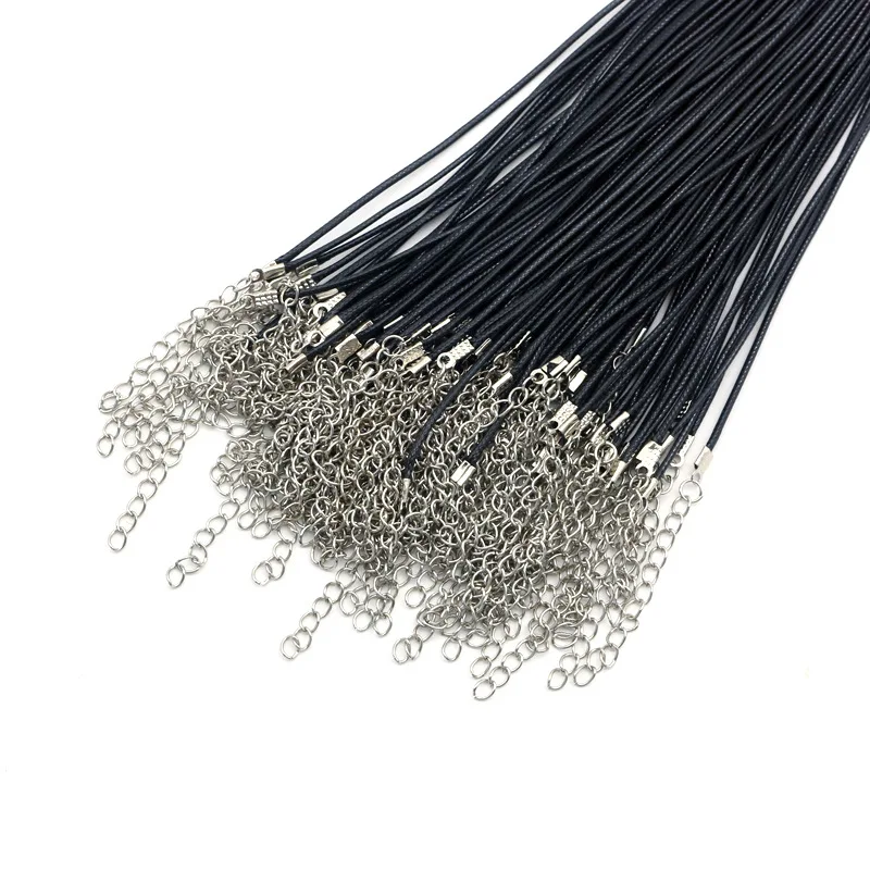 100 шт.лот крупными партиями 1-2 мм черные Вощеные кожаные змеиные ожерелья шнур веревка проволока удлинительная цепь для изготовления ювелирных изделий оптовая продажа
