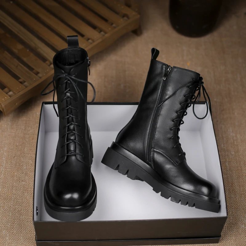 QUTAA2022 женские ботильоны зимние полусапожки из натуральной кожи ...