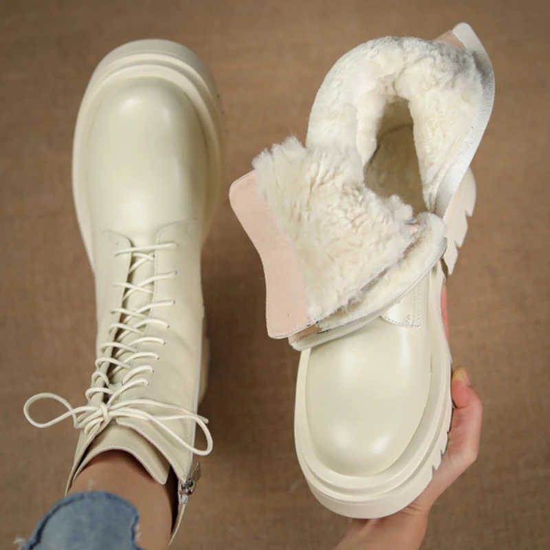 Женские зимние ботильоны из натуральной кожи, на шнуровке, теплые ботинки на платформе, большой размер 34-42, 2021