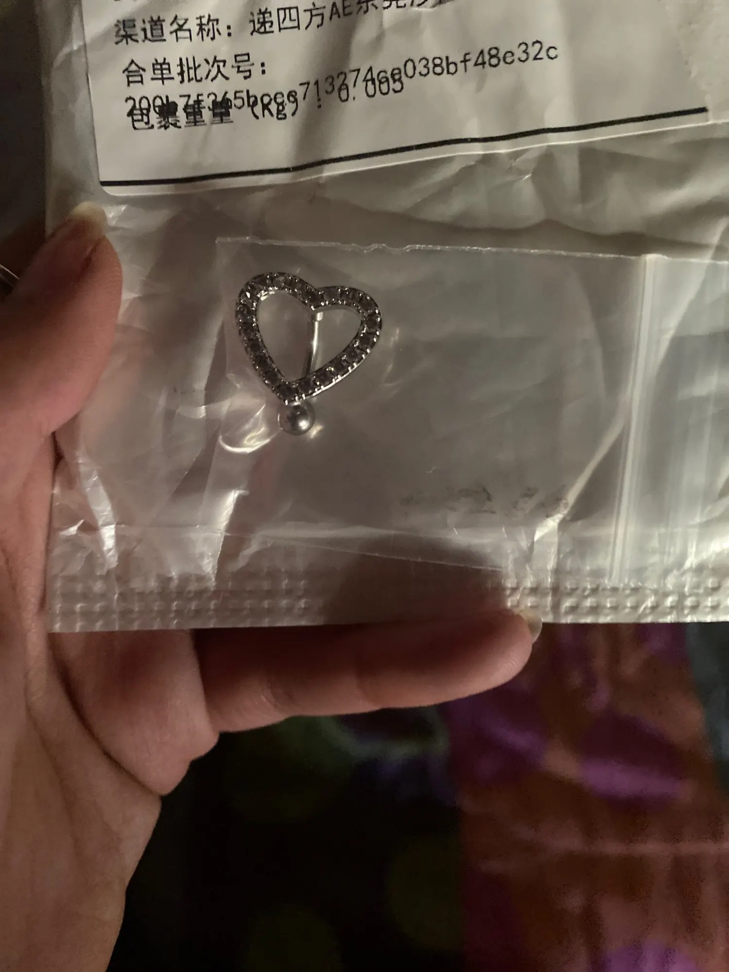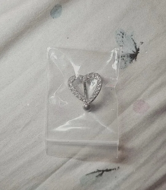 Я еще не занял его, однако, он выглядит ярче и менее непрозрачным, чем аналогичные продукты, купленные в других магазинах. Может быть, он немного большой для меня, потому что у моего отверстия для пупка меньше волос, или он ниже, но выглядит хорошо, так как фигура сердца не толстая. Он прибыл в Чили довольно быстро